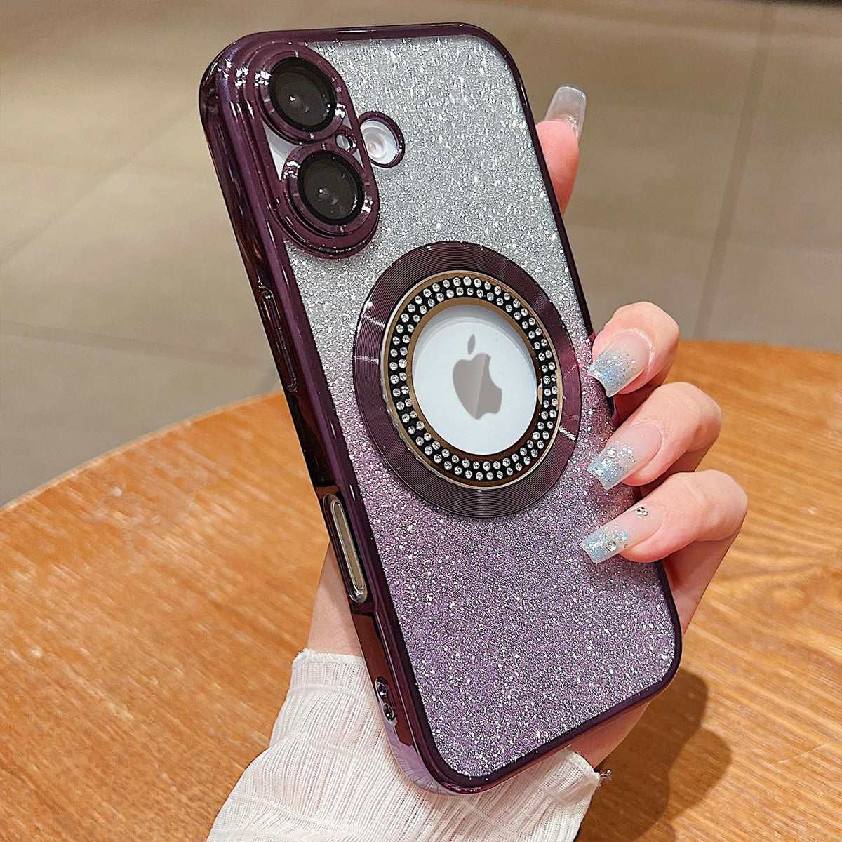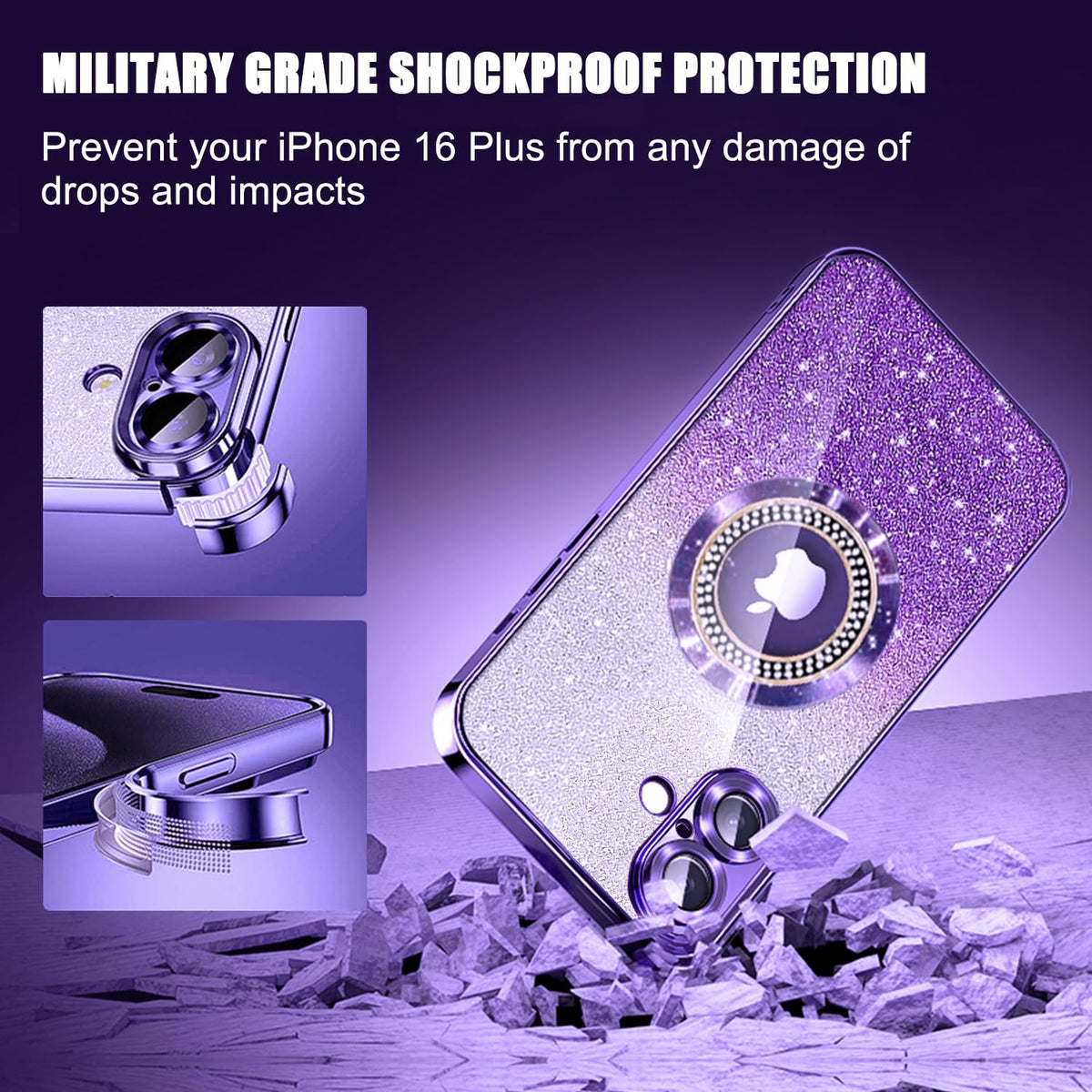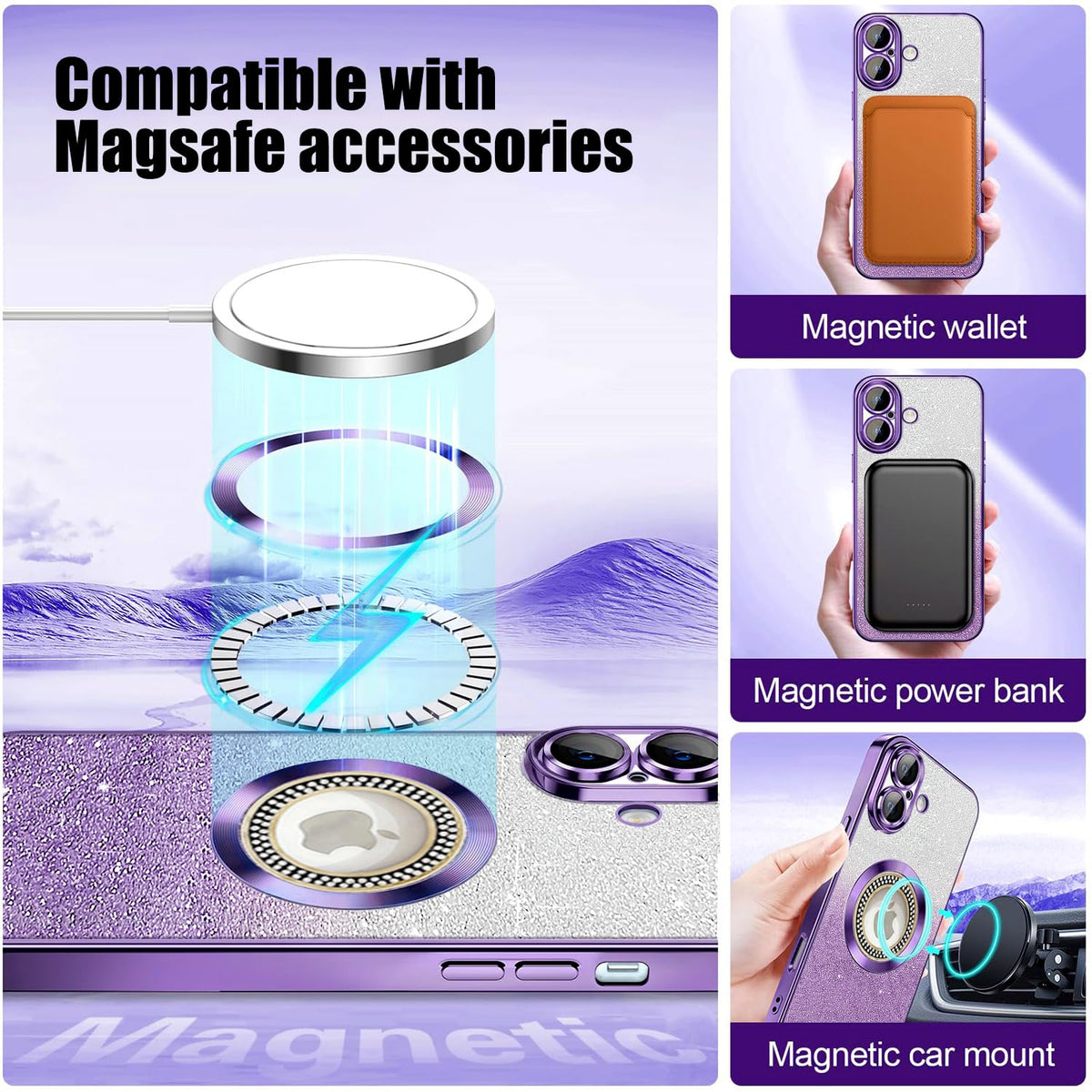 Misscase For Iphone 16 Plus Magnetic Glitter Case Compatible With Magsafe,Full Protection Slim Shockproof Anti-Scratch Diamond-Bordered Case With Camera Lens Protector Logo View Dust-Proof Net For Women Purple
