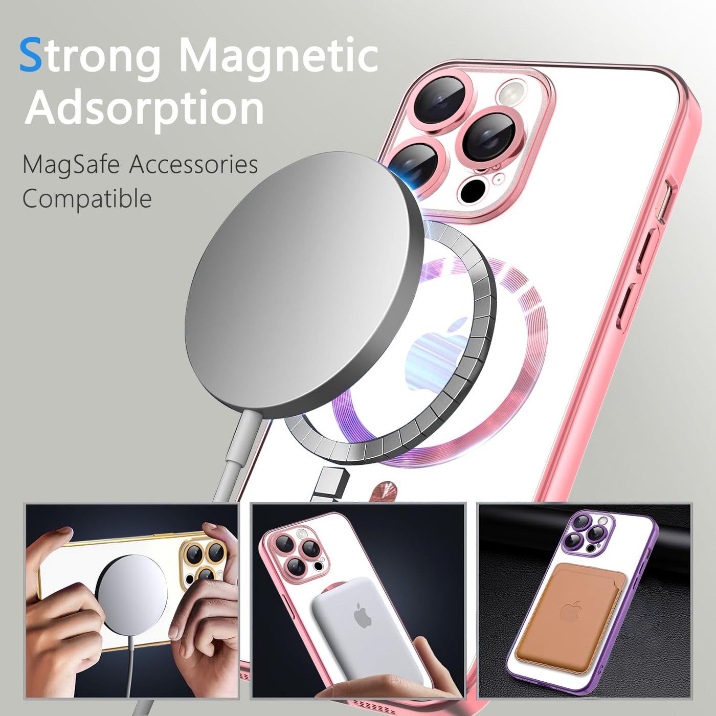 Misscase Iphone 13 Pro Magsafe Case With Lens Protector, Clear Magnetic Anti Scratch Cover Rose Gold