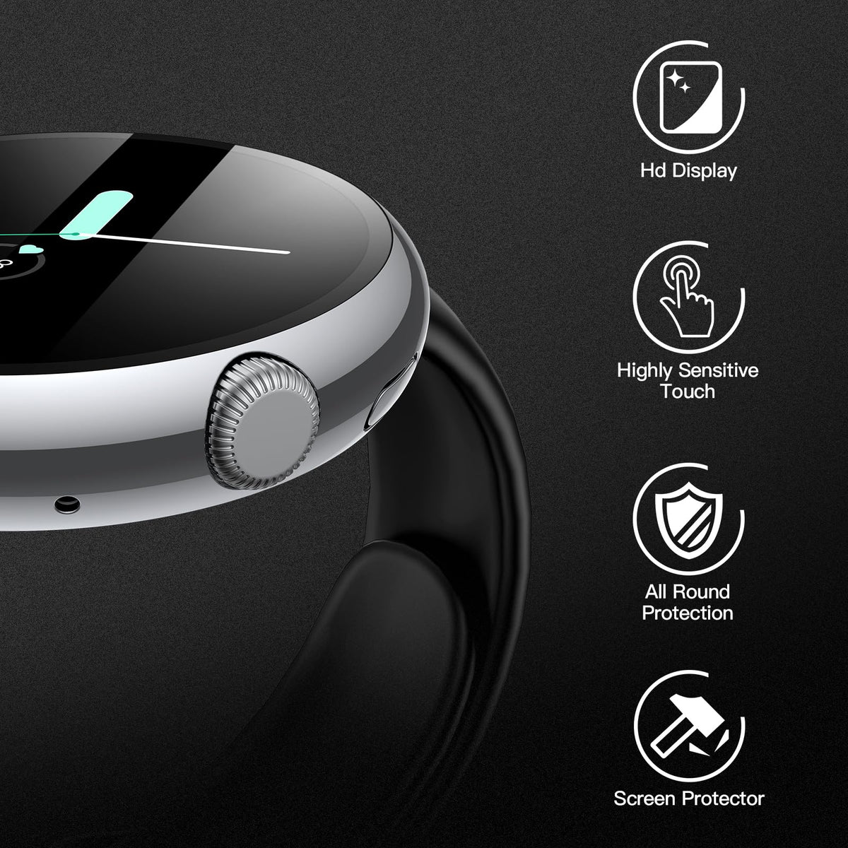 High Sensitivity: This Screen Protector For Google Pixel Watch 2/ Pixel Watch 41Mm Is Made Of Hard Pc And 9H Tempered Glass, Durable, Smooth To The Touch, And Very Thin And Lightweight For Smooth Touchscreen Use.Superior Materials: The Cover Is Made Of Durable And Hard Pc Material With Built-In Hd Clear Tempered Glass Protector, High Quality Material Makes Your Google Pixel Watch 2/ Pixel Watch More Smooth And Outstanding.Drop-Proof Design? This Case With Screen Protector Can Maximize The Protection To Your Google Pixel Watch 2/ Pixel Watch, Completely Cover Your Google Watch Screen And Sides, Effectively Prevent Scratches, Bumps And Accidental Drops.Easy Installation? With Snap-On Design, This Case Can Be Easily Installed And Removed, Giving You A Better Sense Of Use. If You Encounter Any Problems During Installation, Please Feel Free To Contact Us, We Will Provide You With Effective Assistance.Products Included ? You Will Receive 1 Silver And 1 Black Cases With Screen Protector For Your 41Mm Google Pixel Watch 2/Google Pixel Watch. Choose Us For High Quality Products And Excellent Service.