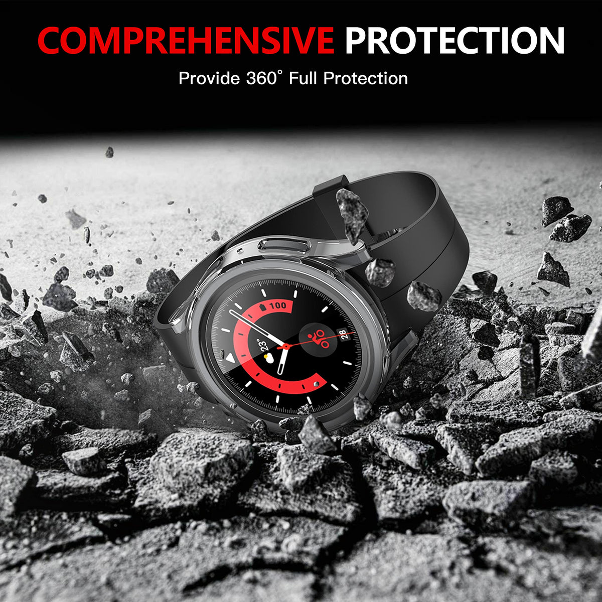 Compatible Watch Series: This Face Cover With Screen Protector Is Only Applicable To Samsung Galaxy Watch 5 Pro 45Mm. Please Make Sure You Are On The Right Series. Scratch And Shock Proof: The High-Quality Pc Case Provides Effective Protection For Your Watch Against Scratches Caused By Hard Objects During Your Daily Life Or Outdoor Activities, Which Helps To Prevent Any Unnecessary Damage To Your Watch. Preferred Material? The Use Of Hard Pc Material Ensures That The Case Is Resistant To Deformation And Yellowing, Providing Optimal Protection For Your Samsung Galaxy Watch 5 Pro. The Tempered Glass Cover Allows For A Clear And Comfortable Viewing Experience That Closely Resembles The Original Screen Display. Products Included? You Will Get 1 Black And 1 Transparent Covers With Screen Protector For Samsung Galaxy Watch 5 Pro. If You Have Any Problems After Receiving The Product, Please Contact With Us, We Will Provide You With The Best Solution.