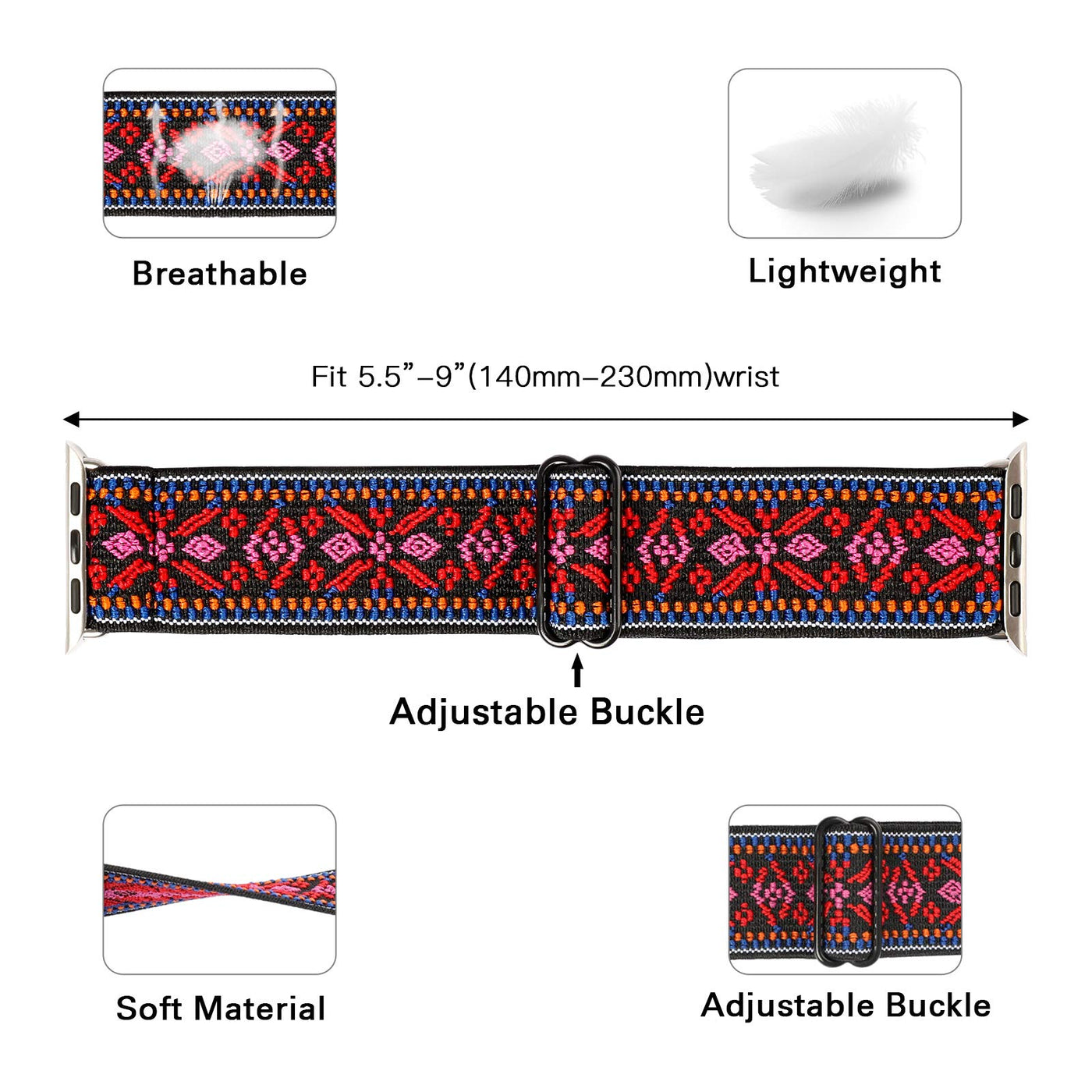 Material: Stretchy Nylon. Compatibility: Available For All Types Of Apple Watches, Including Series 1 - 6/Se And All Sizes (38Mm, 40Mm, 42Mm, 44Mm). Features: Comfortable, Lightweight And Snug, But Stretchy, Adjustable. Band Size: One Size Fits Wrist Size: 5.5''-9.4'' Ideal Gift: Super Cute Elastic Watch Strap Is A Great Gift For Family, Friends And Yourself. You Will Get Tons Of Compliments As It Is Stunning. Disclaimer: Colors May Vary Slightly As They Are Quite Vivid And Computer/Phone Screens Will Become Dull And The Perception May Warp A Little. Don'T Be Alarmed. They Are Beautiful! Service: If You Have Any Questions, Please Feel Free To Contact Us And We Will Always Be Here To Help You.