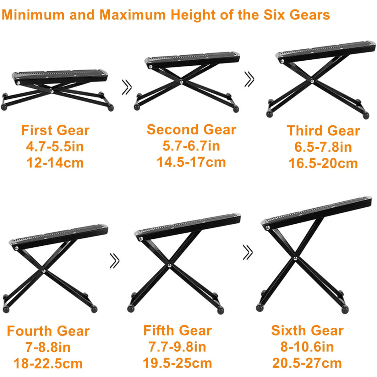 ?Material?Made Of Heavy-Duty Metal, Sturdy Construction With Fine Workmanship. Easy To Set Up, Folds Flat For Convenient Storage Or Transport ?Functions?Height Adjustable Up To Six Fixed Height Positions. Maximum Height: 10.6''/27Cm, Minimum Height: 4.7''/12Cm ?Classical Design?Features Rubber End Caps And A Non-Slip Rubber Pad For Excellent Stability ?Package Include?Provides Six Tune Ergonomic Playing Positions To Classical Guitarists Or Studio Electric Guitar Players ?Miweyer Ensure? Miwayer Is Committed To The Research And Production Of Musical Instrument Related Products. It Is A Professional Musical Instrument Manufacturer. If You Have Any Questions, You Can Contact Us In Time.