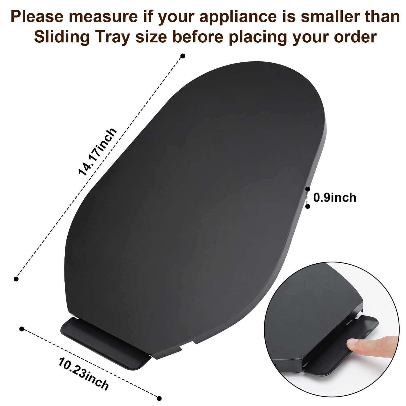 Q: What are the dimensions of the Mixer Sliding Tray?A: The dimensions of the Mixer Sliding Tray are 10.23 inches in width, 14.17 inches in depth, and 0.9 inches in height, making it a suitable size for most kitchen countertops.