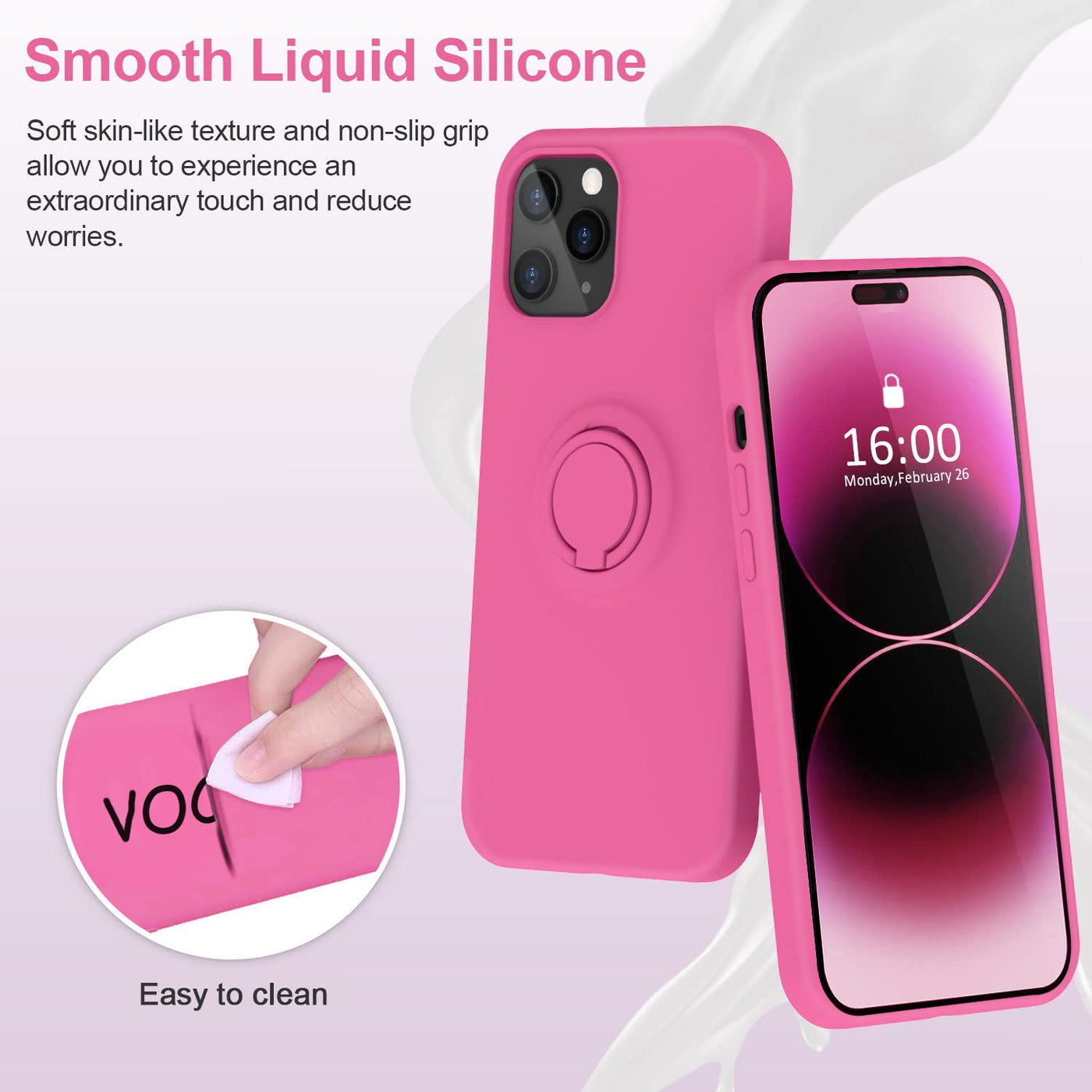 Q: How does the built-in ring stand work?A: The built-in ring stand rotates 360° and flips 120°, providing a stable viewing experience and a secure grip while using your phone.