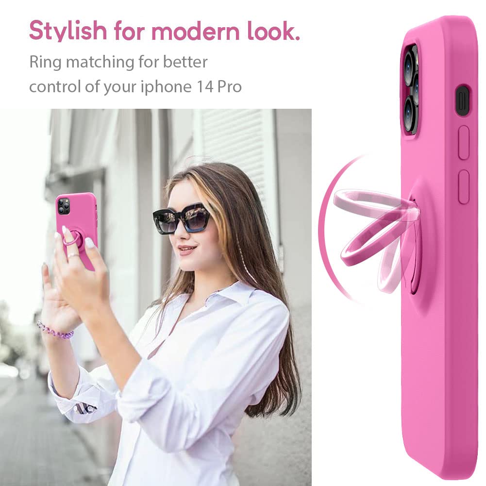 Mocca Compatible With Iphone 14 Pro Phone Case With Ring Stand | Super Soft Microfiber Lining | Full Body Anti Scratch Liquid Si