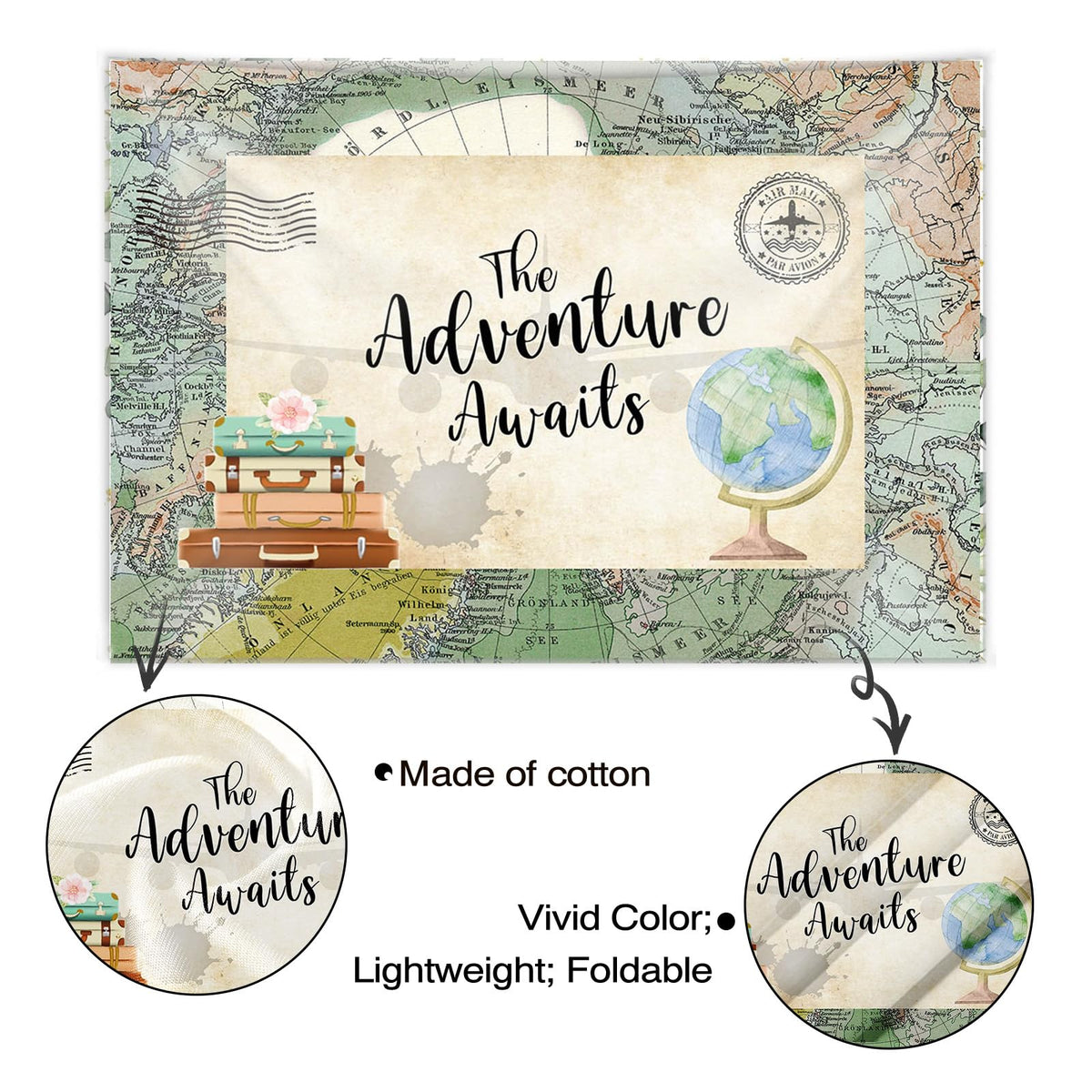 Mocsicka Adventure Awaits Baby Shower Backdrop Travel Themed Let The Adventure Begin Party Decorations World Map Travel Around T