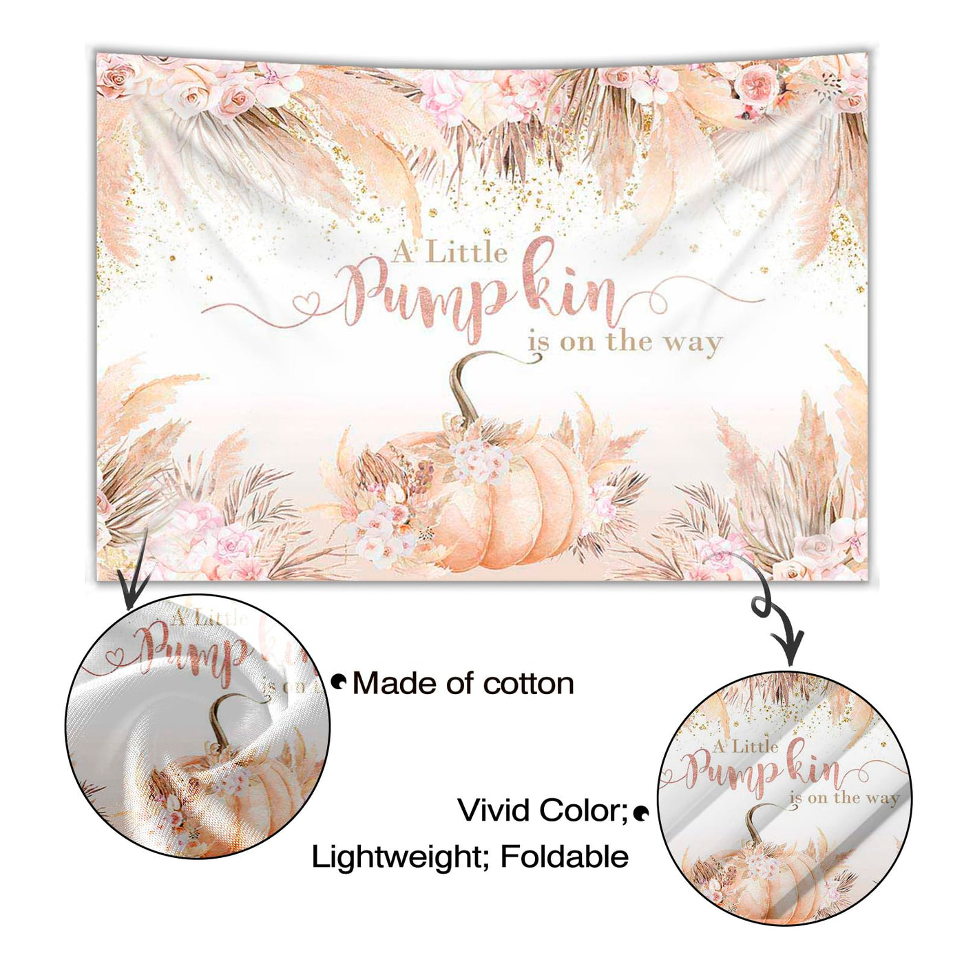 Mocsicka Boho Pumpkin Baby Shower Backdrop For Girl 7X5Ft Fall Pink Floral Little Pumpkin Baby Shower Decorations A Little Pumpk