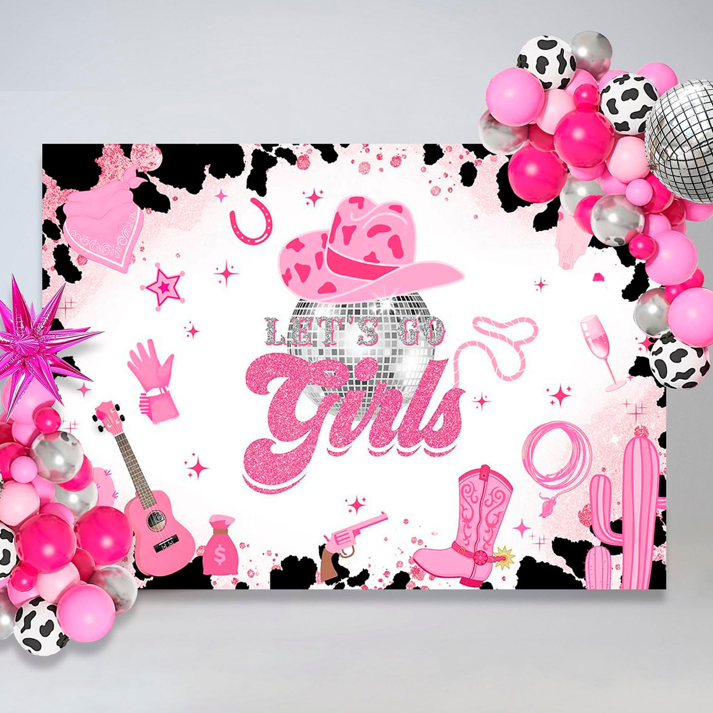 Mocsicka Disco Cowgirl Backdrop Pink Space Let'S Go Girls Birthday Banner Bachelorette Weekend Last Rodeo Let'S Get Nashty Wetse