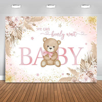 Mocsicka Girl Bear Backdrop Pink Boho Pampas Grass Background We Can Bearly Wait Baby Shower Party Cake Table Decoration Photo B