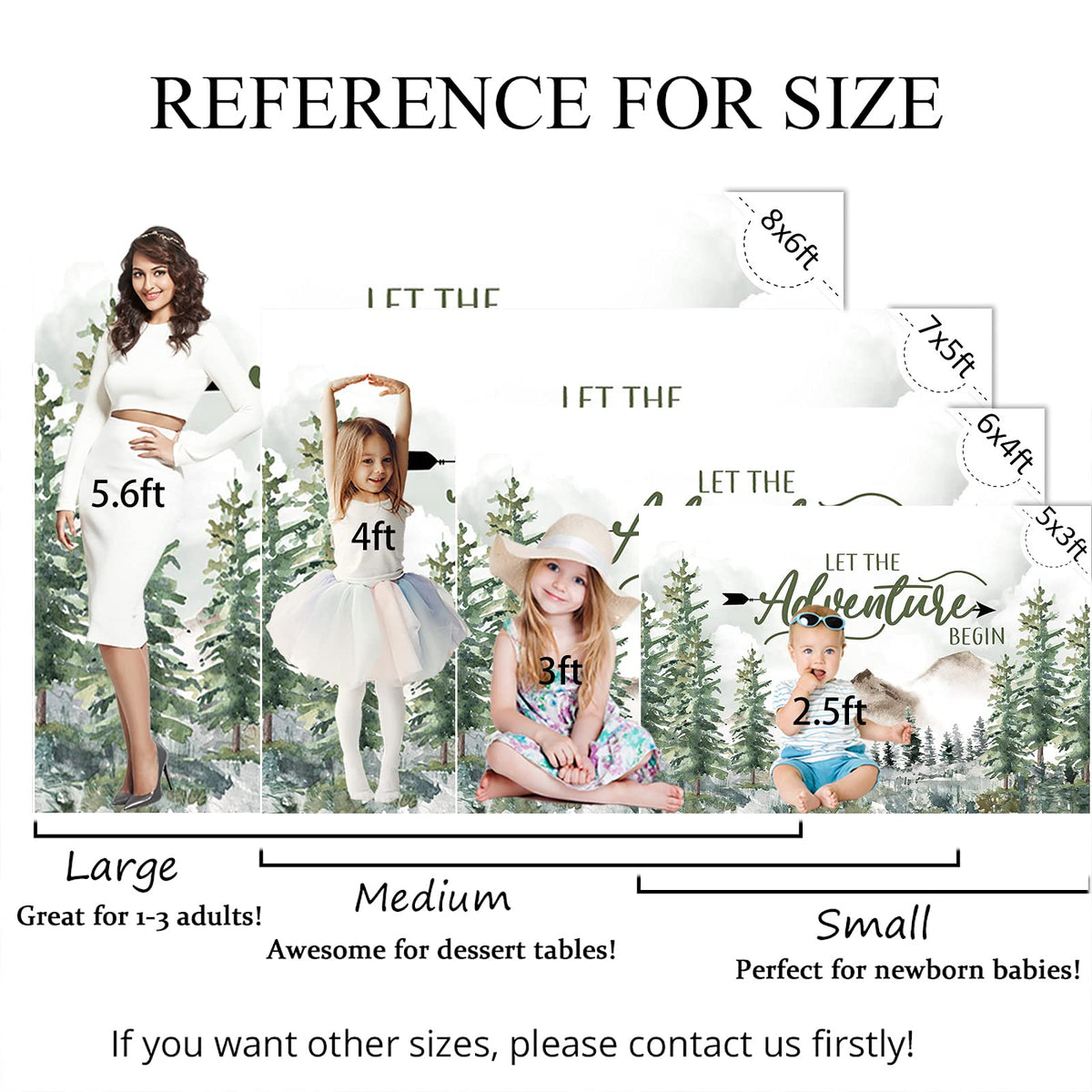 Q: What are the dimensions of the Mocsicka Let The Adventure Begin backdrop?A: The backdrop measures 7x5 feet (82x60 inches) or 210x150 cm, making it suitable for various party decorations and photography themes.