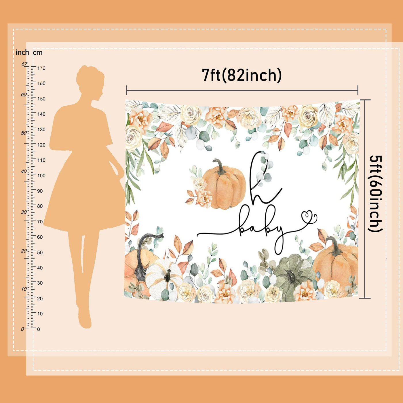 Q: What are the dimensions of the Mocsicka Pumpkin Baby Shower Backdrop?A: The Mocsicka Pumpkin Baby Shower Backdrop measures 7x5 feet, which is equivalent to 82 inches by 60 inches, making it an ideal size for photography backgrounds and party decorations.