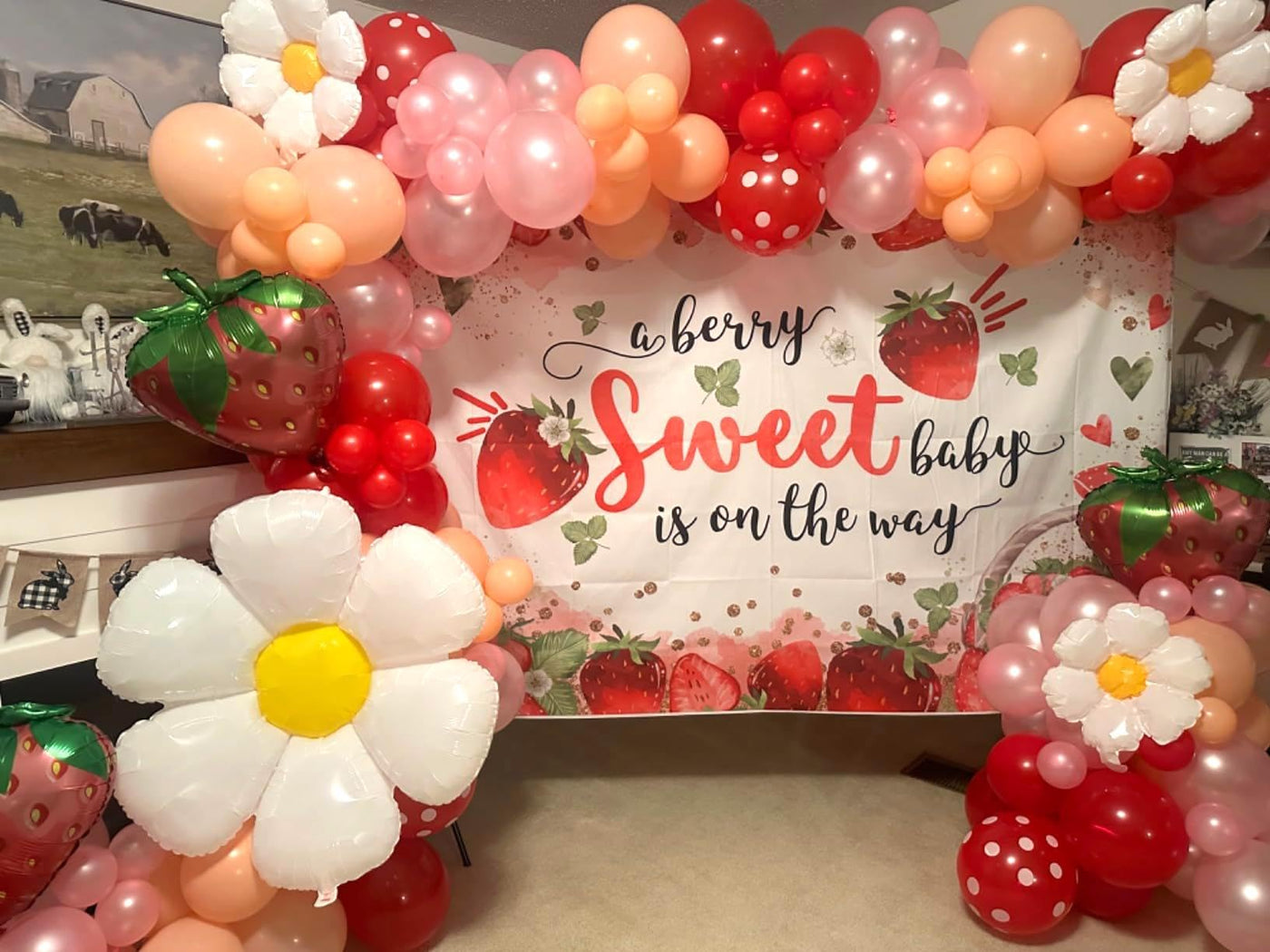 Mocsicka Strawberry Baby Shower Backdrop Strawberry Girl Baby Shower Party Decorations Background A Berry Sweet Baby Is On The W