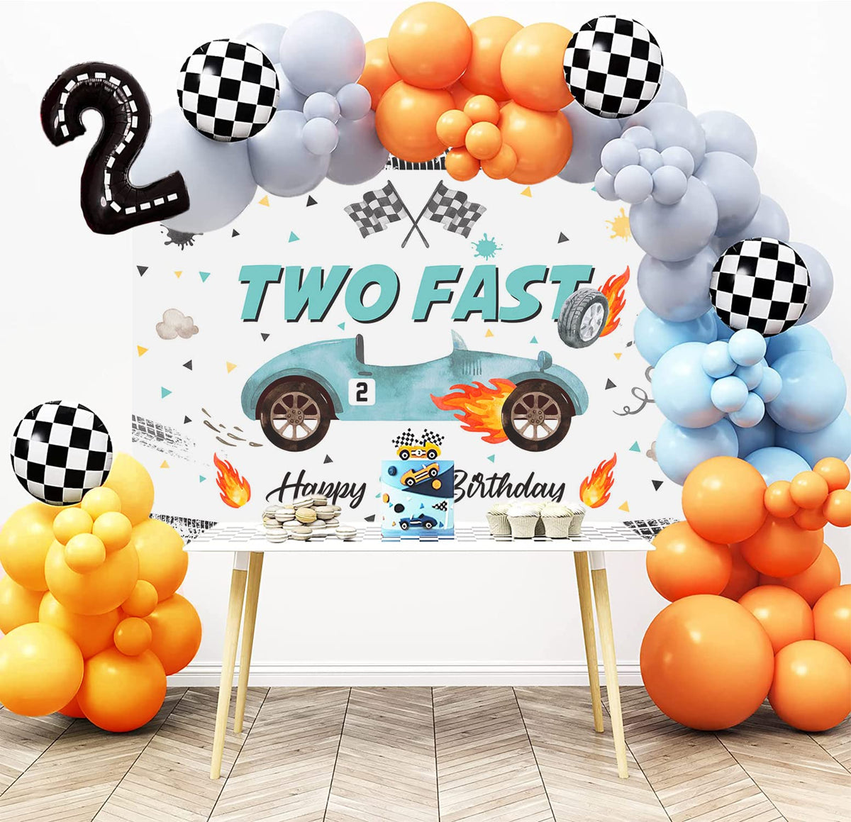 Mocsicka Two Fast Birthday Backdrop Race Car Happy 2Nd Birthday Photo Background Two Fast Birthday Decorations Photography Backg