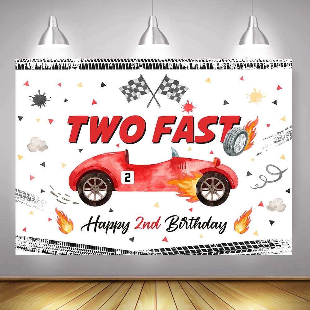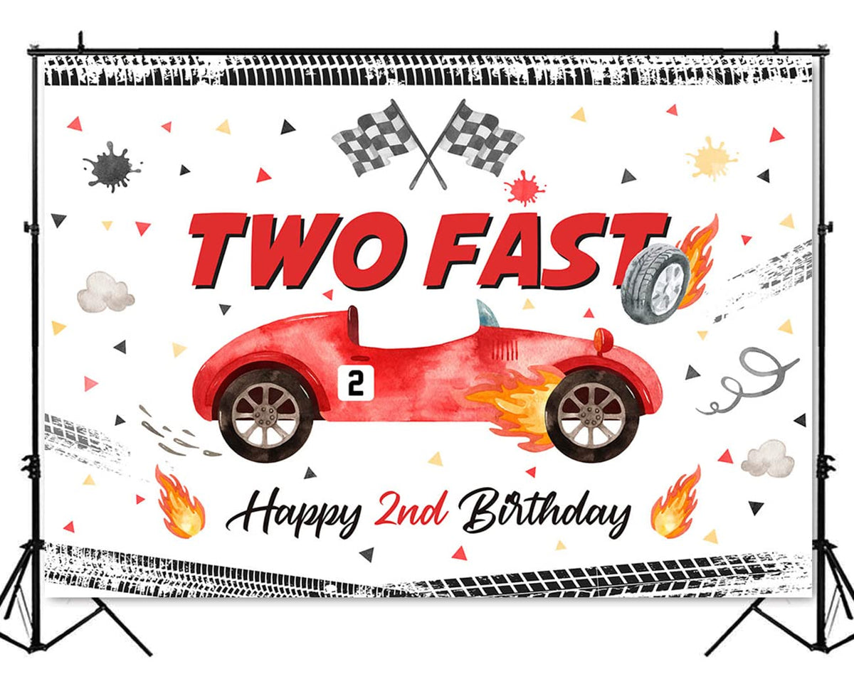 Mocsicka Two Fast Birthday Backdrop Race Car Theme Happy 2Nd Birthday Photo Background Two Fast Birthday Decorations Photography