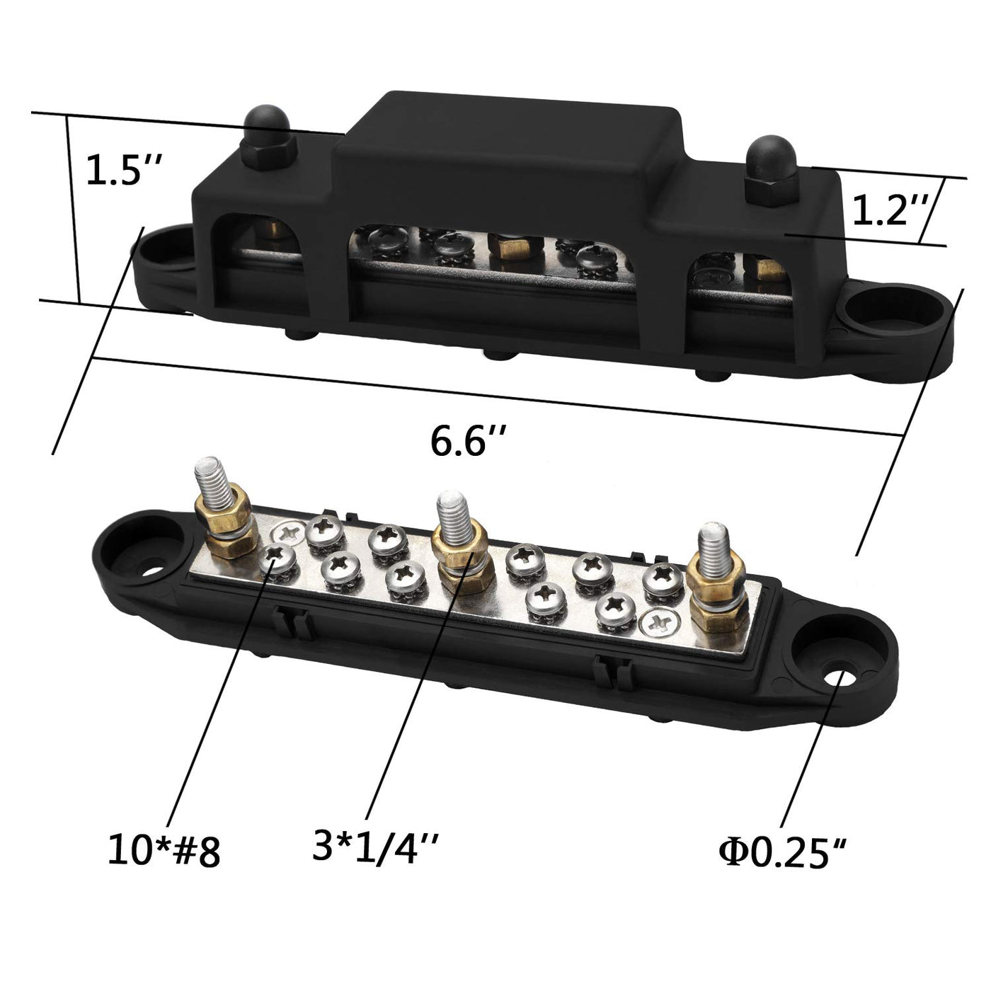 Mofeez Bus Bar 3X1/4 Post,10X#8 Screw Terminal Power Distribution Block With Ring Terminals(Pair Red & Black)
