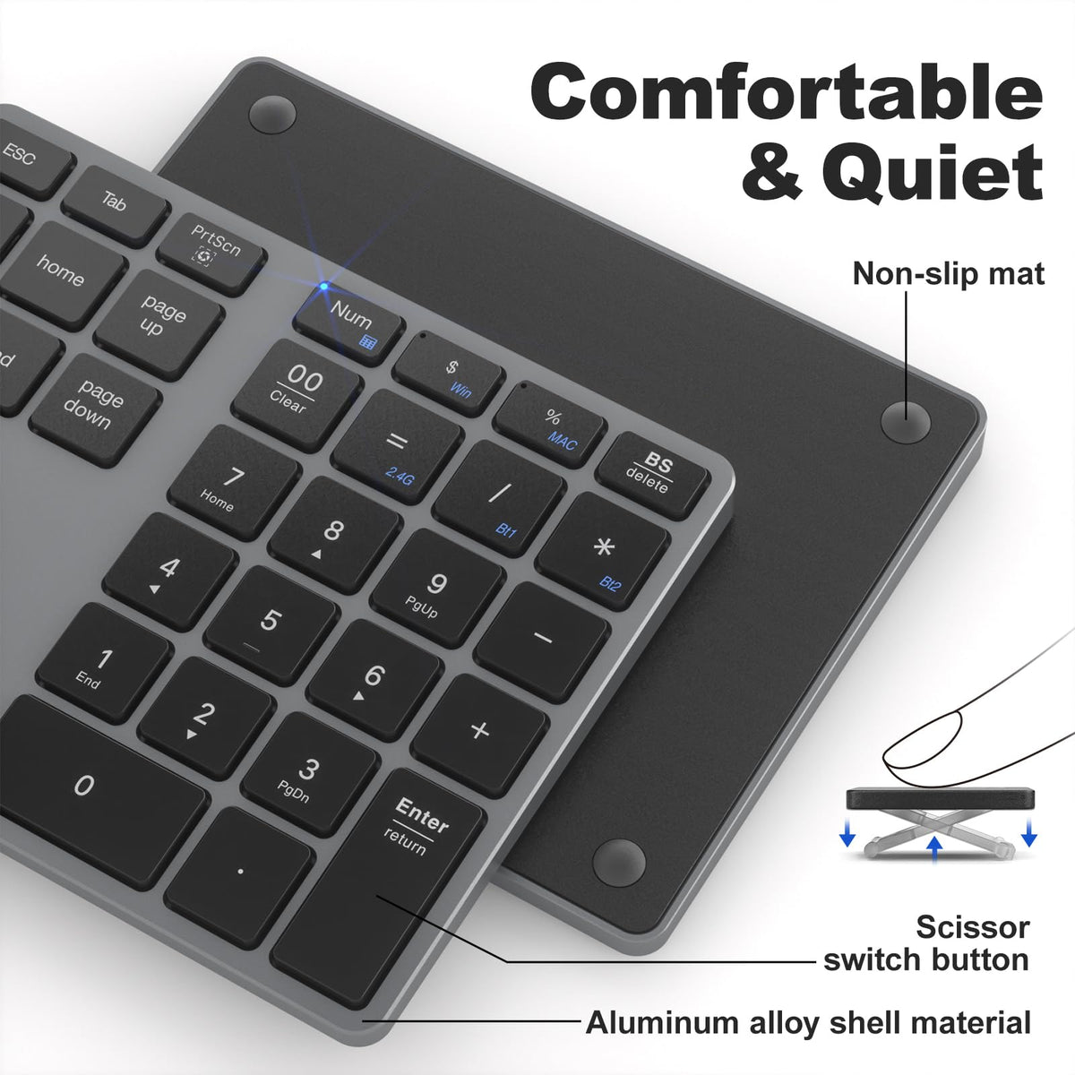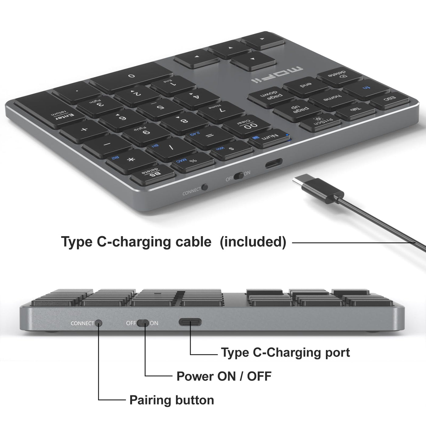 Mofii Bluetooth Number Pad For Laptop Gray Wireless Numeric Keypad 35 Keys Usb C Rechargeable Numpad, Accounting Portable Fina