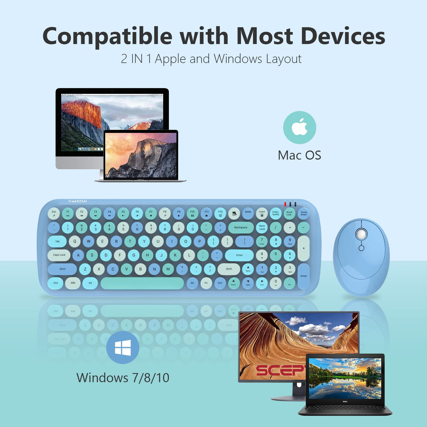 Mofii Wireless Keyboard And Mouse Combo, Compact 2.4G Usb Full Size Wireless Mouse And Keyboard Combo, Cute 110 Keys Keyboard Fo