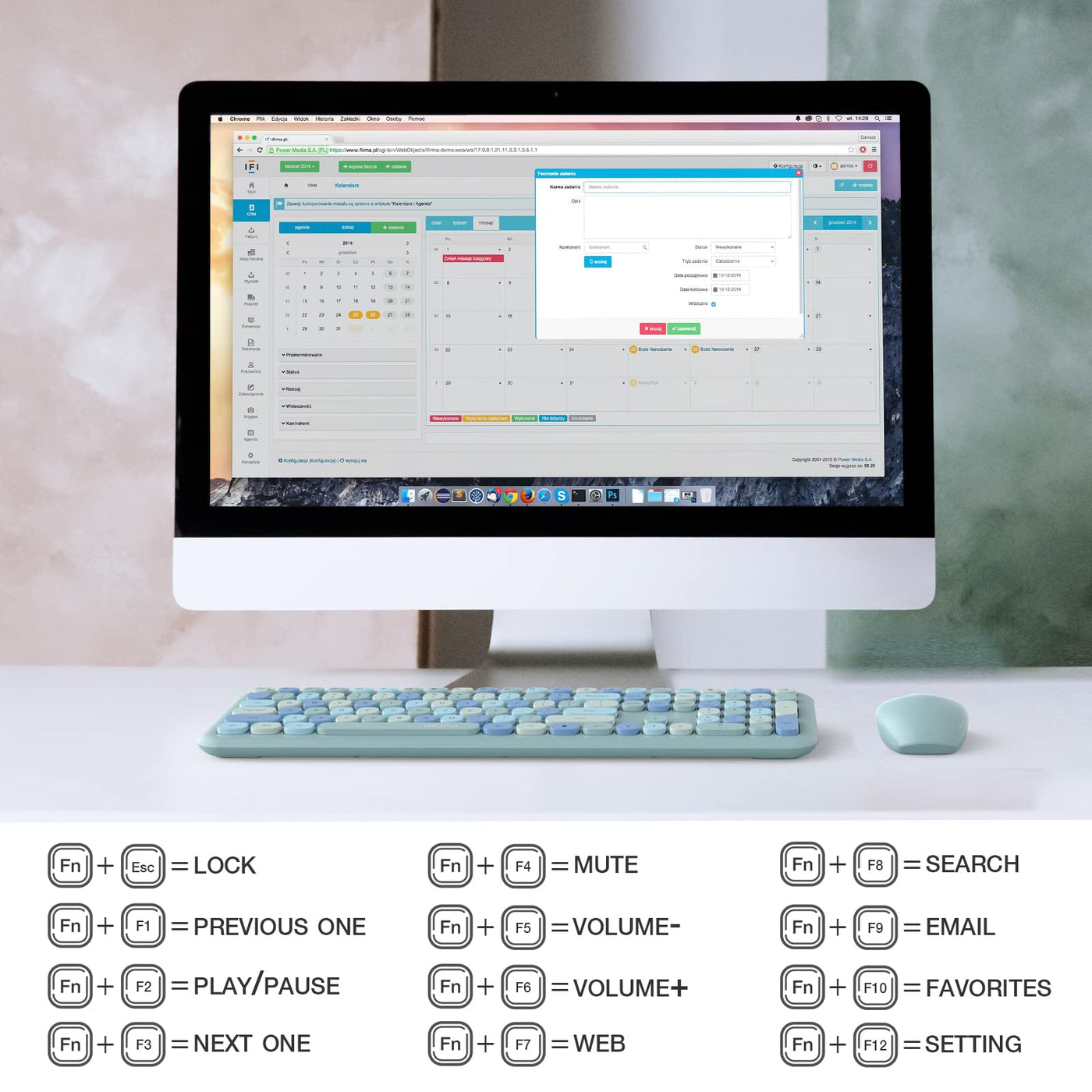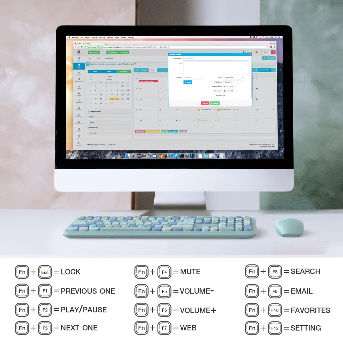 Wireless Keyboard And Mouse Combo --- Your Perfect Office/Home/School/Travel Partnerentire Full-Size Keyboardcute Keyboard With 110 Keys Includes Media Keys, Functional Keys And Numeral Keys, Totally Conforming To Your Typing Habits.Keycaps In Good Resiliencecolorful Stylish Keys Offer Excellent And Comfortable Typing Resilience, No Keys Stuck Or Linking, Ensuring Smooth Typing Experience.6 Degree Ergonomic Slopethere Are Stable Stands At Back Of This Computer Keyboard, 6Tilt Angle For The Great Typing Position Ergonomic Design, Scientific Layout Keycaps Offer Smoother Touch And The Perfect Balance For Your Pleasant Typing.Color-Matched Wireless Mousequiet, Responsive And Reliable, With A Cute Compact Design That Makes It Easy To Bring The Mouse With You Wherever You Need It. Perfect For Office Or Home Use. For Students Or Travelers On The Go Who Need Reliable, Hassle-Free Partner. Wide Compatibilitycompatible With All Kinds Of Pc Devices And Os, Such As Desktop, Computer, Laptop, Pc, Windows Xp/Vista/7/8/10, Mac And So On.Warm Tips1.The Keyboard Is Powered By 1*Aaa Battery And The Mouse Is Powered By 1*Aa Battery.2.Please Take Out The Batteries When You Do Not Use Devices For A Long Time.3.The 33Ft Longest Wireless Range Will Be Shortened If There Are Any Obstacles.Specificationkeyboard Size: 443*138*29 Mm (17.44*5.43*1.14 Inches)Mouse Size: 104*69*35 Mm (4.09*2.72*1.38 Inches)Total Net Weight: 20.81Oz/590G (Batteries Not Included)Package Contents 1 X Wireless Keyboard 1 X Wireless Mouse 1 X Usb Receiver 1 X User Manualnote: Not Fully Compatible With Mac Os