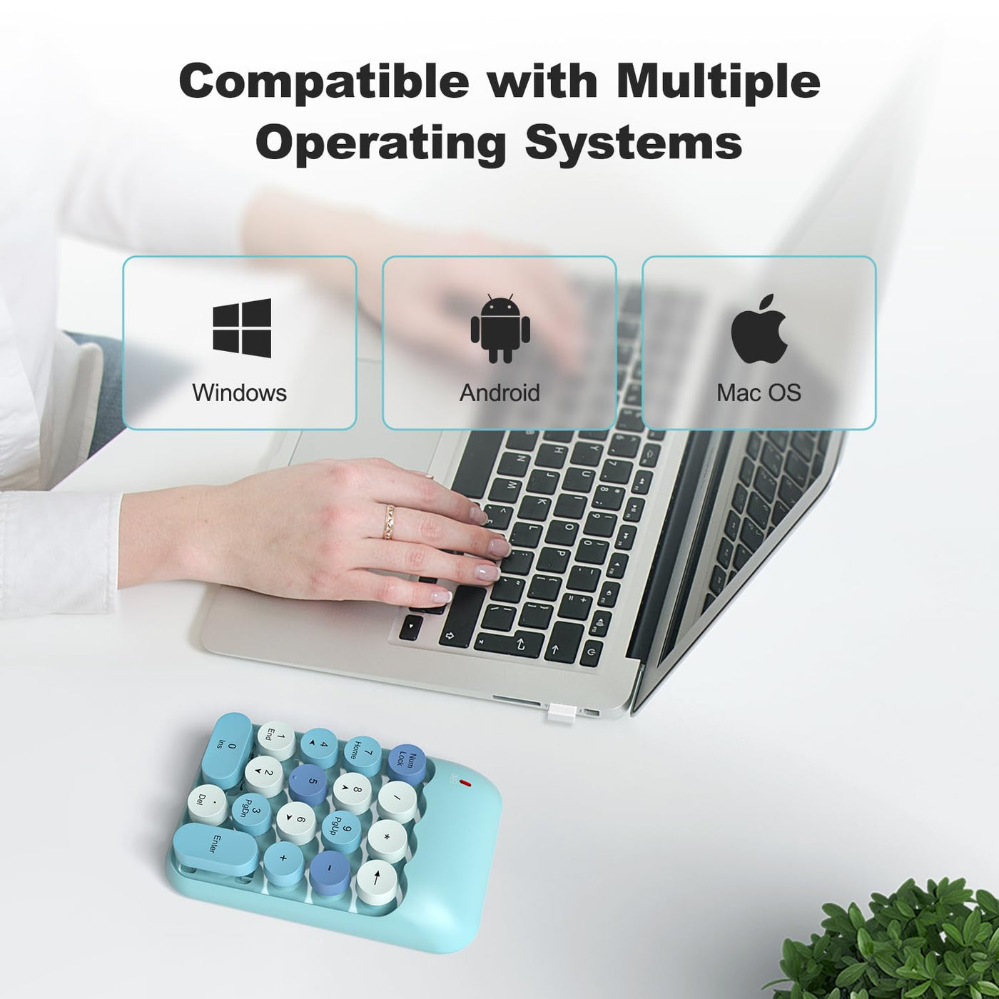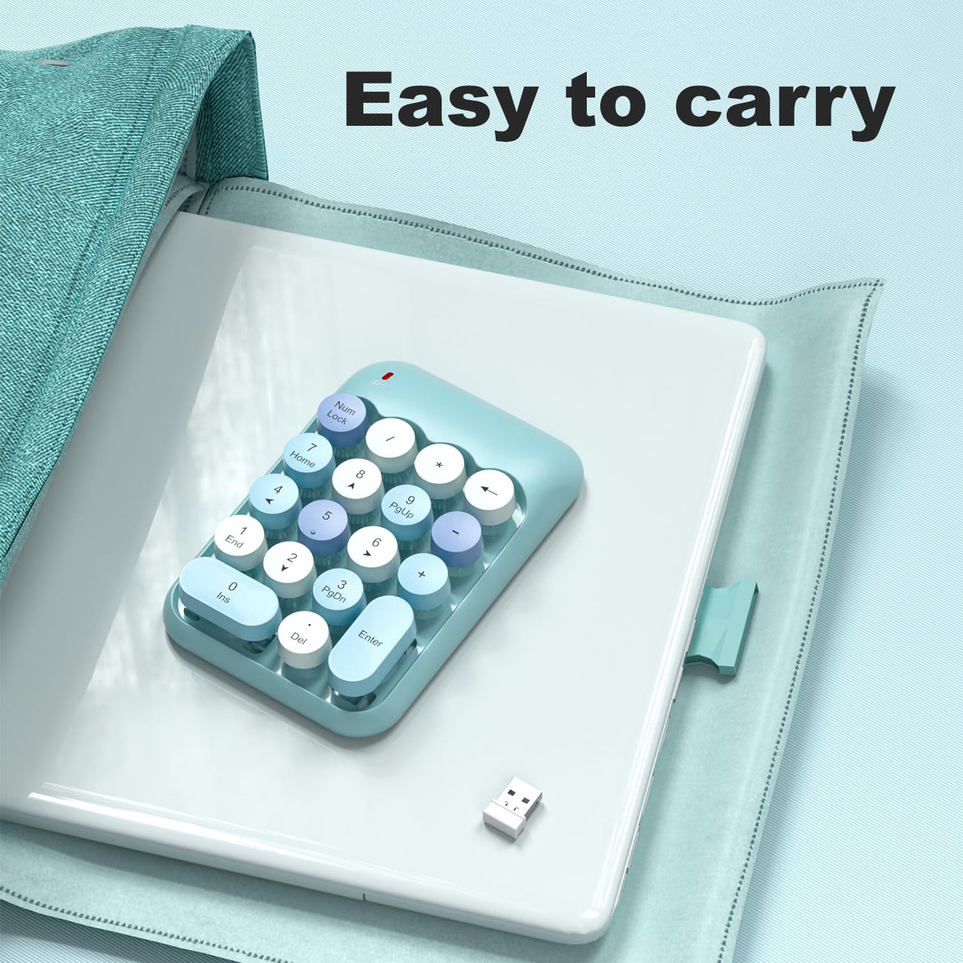Mofii Wireless Number Pads Blue Numeric Keypad 18 Keys Usb 2.4G Round Keycap Colorful Extensions Keypads, Financial Accounting