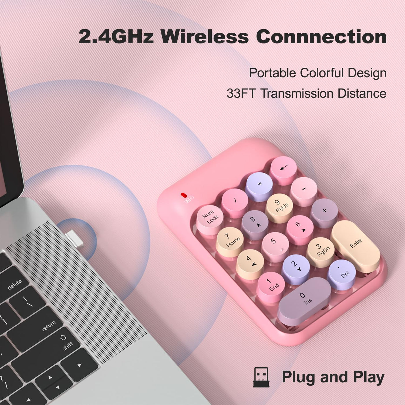 Mofii Wireless Number Pads Pink Numeric Keypad 18 Keys Usb 2.4G Round Keycap Colorful Extensions Keypads, Financial Accounting