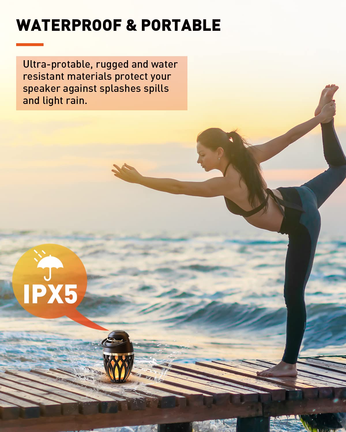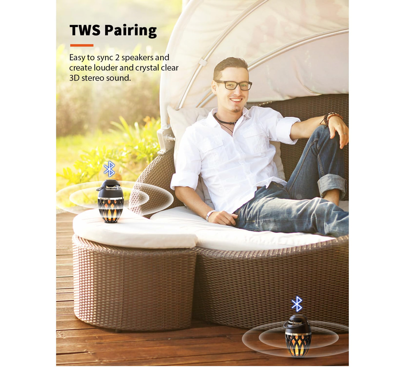 Waterproof Outdoor Bluetooth Speaker With Led Flame Light Do You Wanna Have A Amazing Sound And Light Simultaneously? Only Need One Outdoor Speaker With Light To Enjoy Music And Flame Light Sync Effect, Saves Your Cost. Why Choose Mofokeay Wireless Portable Speaker? 1. True Wireless Stereo Bluetooth Speaker Features Wireless Tech, Letting You Pair 2 Bluetooth Speakers For Maximum Output Via A Bluetooth Device. The Dual Pairing Feature Fills Any Room With A Richer Sound At High Volume And Illuminates The Party Night By Led Lights. 2. Long Last Battery Life Enjoy 30 Hours Play Time, 4 Hours Seamless Music At Full Volume. Each Outdoor Speaker Works Playing With Light Simultaneously 3H Or Stay On/Off. 3. Multifunctional Outdoor Bluetooth Speaker With Flame Effect Not Only A Portable Bluetooth Speaker, But Also A Decoration Lantern, Atmosphere Lamp And Led Night Light, Bring You A Flickering And Warm Night. 4. Sync Easily, Play Simultaneously Both Speakers Sync To Play Via Only One Device, No Need Worry Syncing Issue. 3D Stereo Music Synch To The Light, Bring You An All-Around Sensory Experience. 5. A Terrific Addition To Patio/Summer Pool/Yard/Camping Housewarming Gifts Or Birthday Gifts For Women Who Have Everything,Tech Gifts For Men And Idea Decor For Outdoor Indoor, Light Decoration For Garden, Porch, Wall, Rock Party. 6.Ipx5 Waterproof Torch Light Bluetooth Speaker Outdoor Long-Lasting Abs Material And Rugged Housing Protects It On All Of Your Outdoor Adventures. Package: 2 X Bluetooth Speaker With Flame Light Effect Usb Cable User Manual 3.If Any Use Problem, Just Feel Free To Contact Us, We Offer 24-Hour Online Service For You.