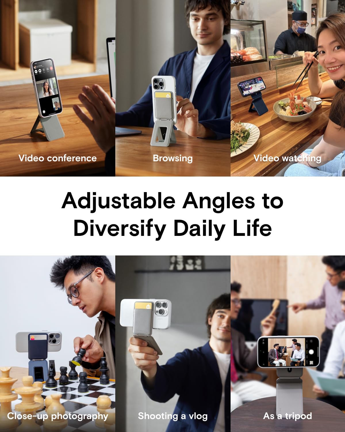 Moft Phone Tripod Wallet, 3 In 1 Phone Stand Magsafe, Nfc-Supported Magnetic Phone Wallet, Movas Vegan Leather Adjustable Card H