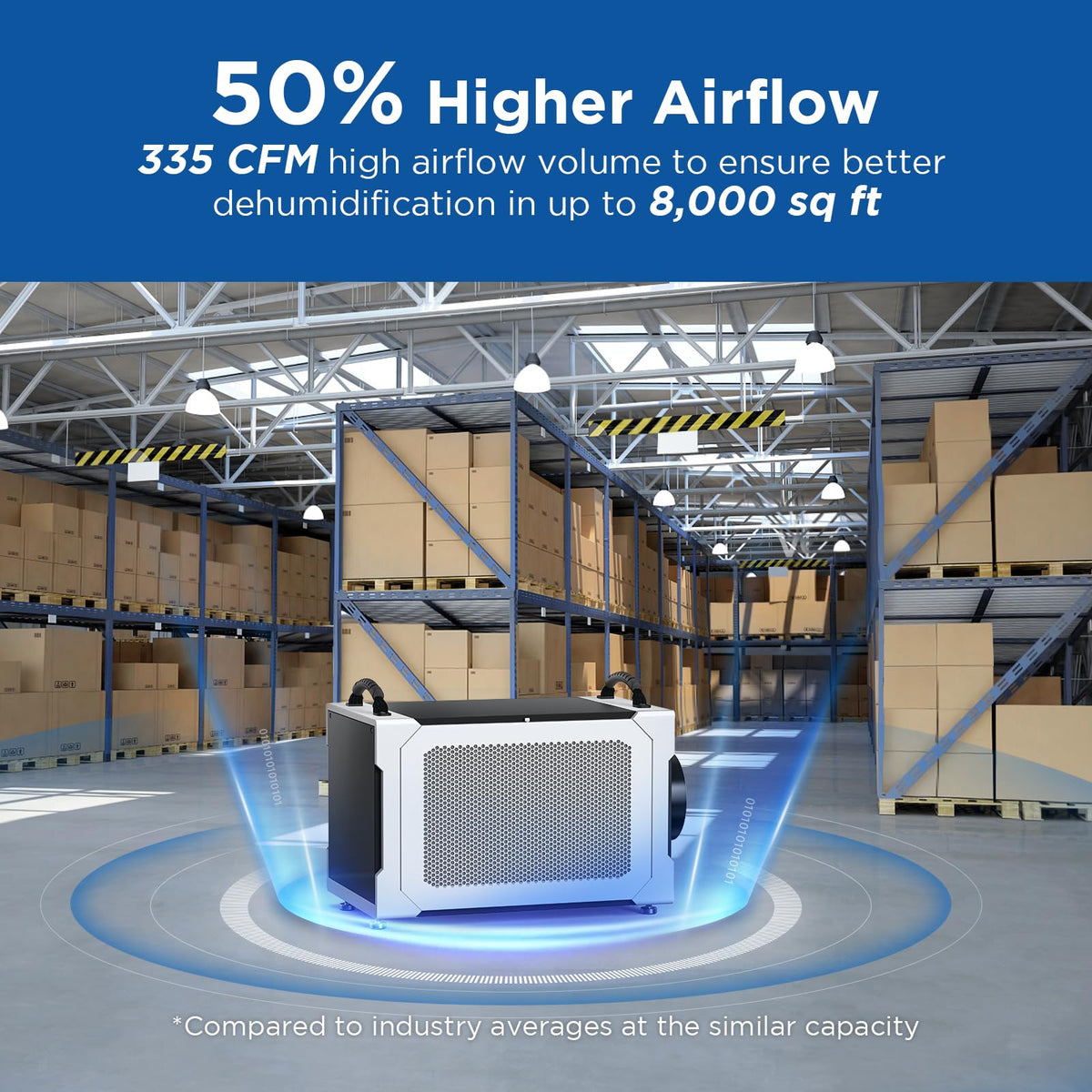Moiswell Commercial Dehumidifier With Pump And Drain Hose For Crawl Space Has A Very Powerful Dehumidification Capabilities, Maximum Up To 235 Pints/Day, 100 Pints/Day (Aham) Humidity Control For Up To 8,000 Sq Ft Basements