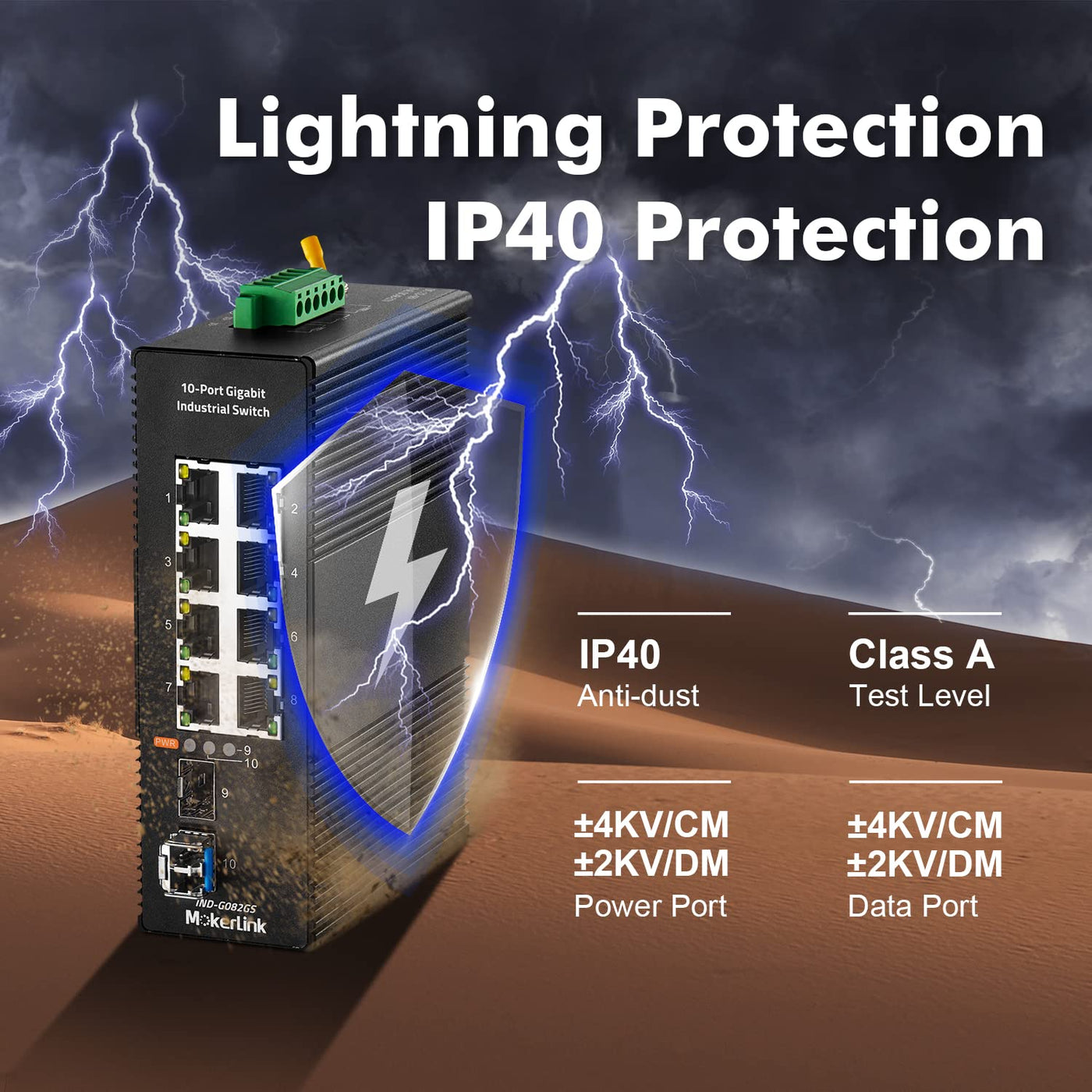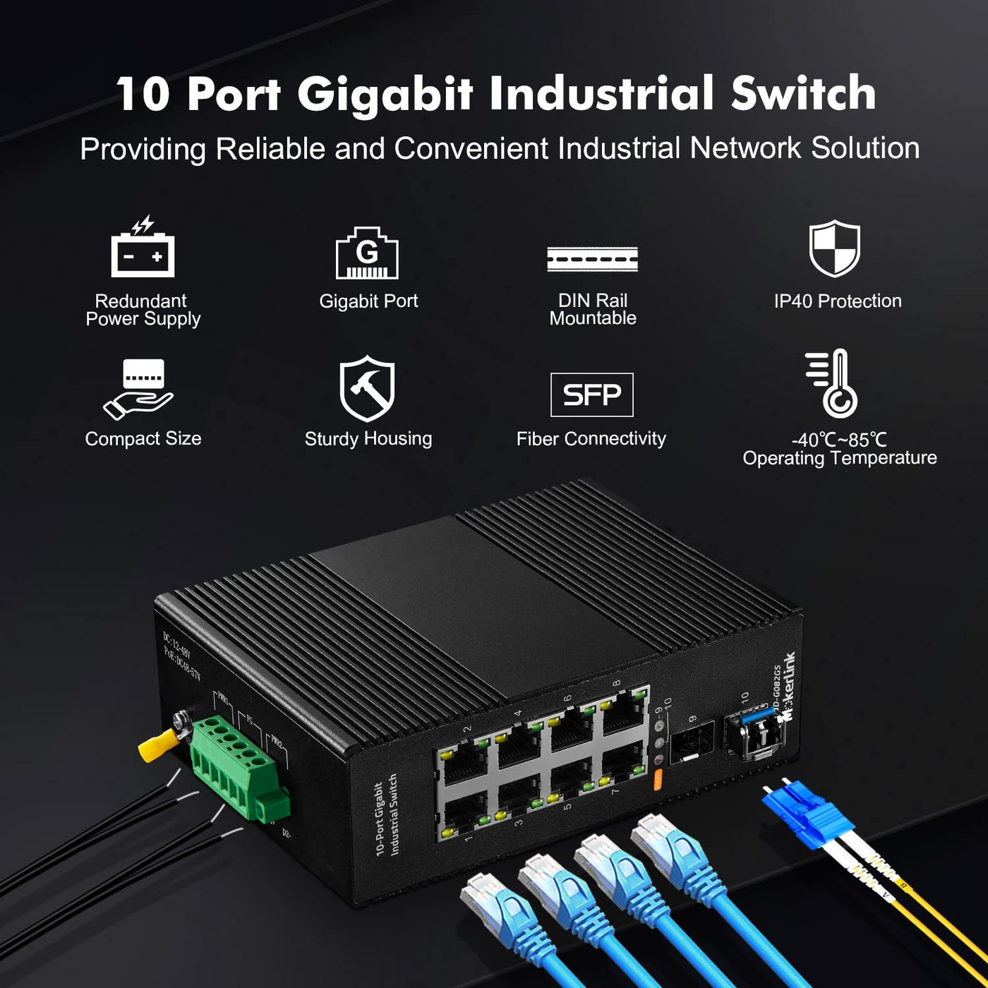 Mokerlink 8 Port Gigabit Industrial Din-Rail Ethernet Switch, 2 Sfp Ports, 20Gbps Switching Capacity, Ip40 Rated Unmanaged Network Switch (-40 To 185F), With Ul Power Supply