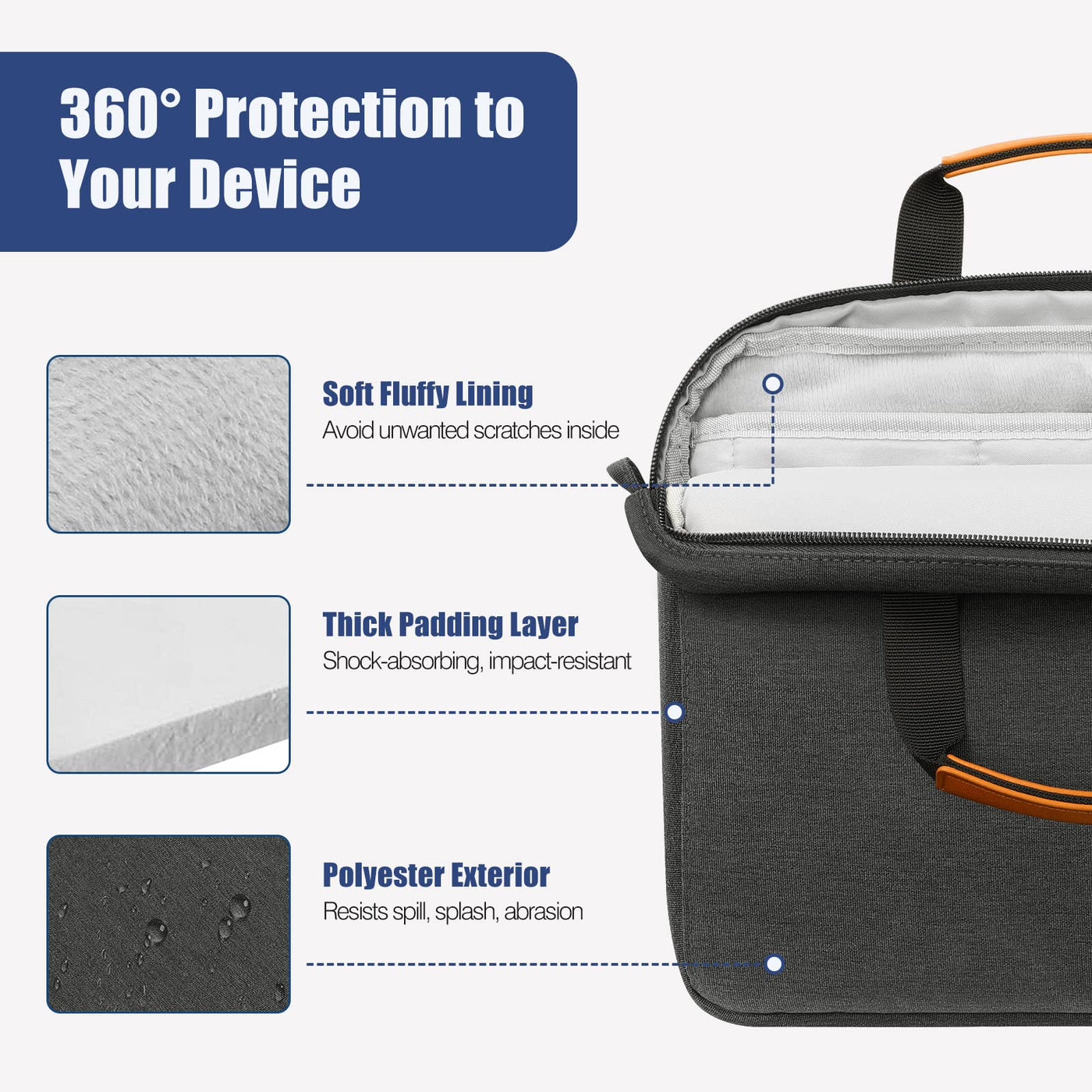 MoKo 12.9 Inch Tablet Sleeve Case Fits 13 Inch New iPad Pro M4 & Air M2 2024,iPad Pro 12.9 M2&M1,Surface Laptop Go 12.4,Galaxy Tab S8+/S9+ 12.4,Multi Functional Pockets with Shoulder Strap,Black&Gray