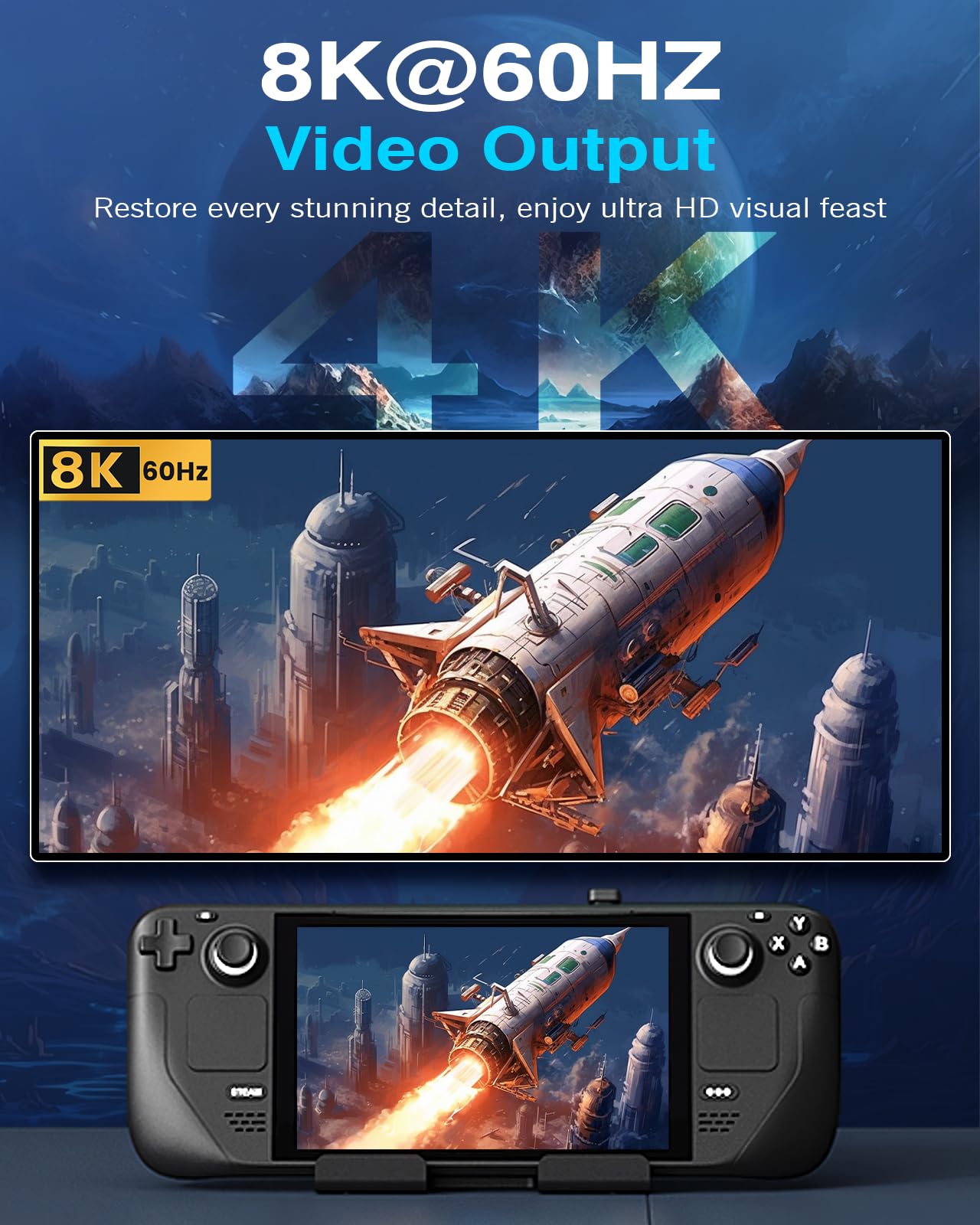 Compatibility: � Steam Deck, Switch � MacBook/MacBook Pro 2021/2020/2019/2018, Macbook Air 2021/2020/2019/2018 � iPad Pro 2022/2021/2020/2019/2018, iMac2020 � Samsung Galaxy S21/S20/S10/S9/S8, Note20/10/9/8 � Surface Book 2, Dell XPS13/15, Acer Spin7, Acer Chromebook R13, Yoga 900/910 � Google Chromebook Pixel, HP Spectre X2/X360, Lenovo 900/910, HuaWei MateBook � Other Type-C devices. � ROG Ally