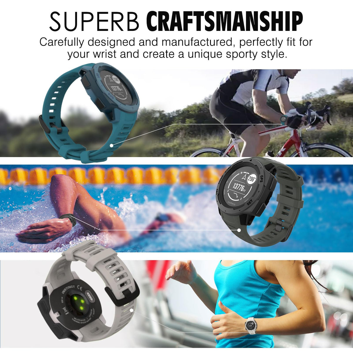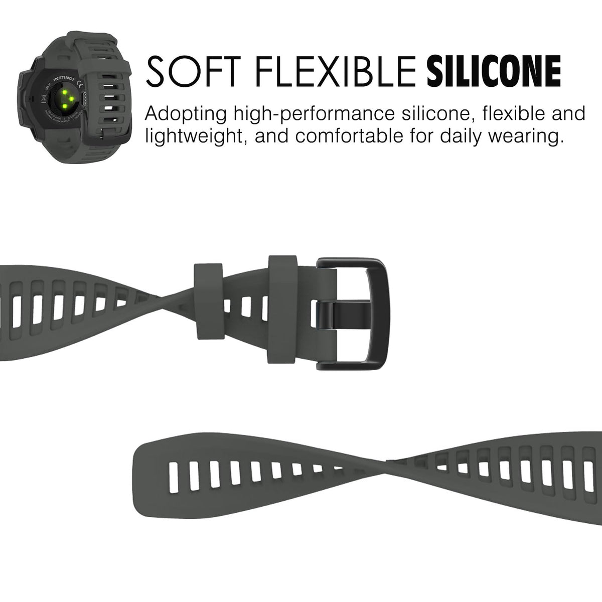 Personalized Your Garmin Instinct /Instinct - Esports Edition/Solar - Tactical Edition/ Instinct Tide / Instinct Tactical / Instinct 2/Instinct 2 Solar/ Instinct 2 Solar Tactical/ Instinct Crossover Sports Gps Smart Watch With This Refined Replacement Wrist Band.Comparable To Original Garmin Watch Band. Smartwatch Not Included.(Not Compatible With Instinct 2S). | Simply Remove Your Current Watch Strap And Add A New One For A Comfortable And Enhanced Fit. Two Pins And One Pin Removal Tool Included. | The Strap Is Made Of Soft Silicone With A Smooth Finish For A Sporty Look. Comfortable And Durable. | Replace Your Strap On Instinct And Instinct 2 Watches With These Stylish Colors. And The Buckle Is Made Of Stainless Steel, Which Is Safe For The Skin And Durable. | The Adjustable Strap Fits The Wrist 4,92''-7,87'' (125 - 200 Mm) In Circumference. Before You Buy It, Please Measure Your Wrist Circumference.