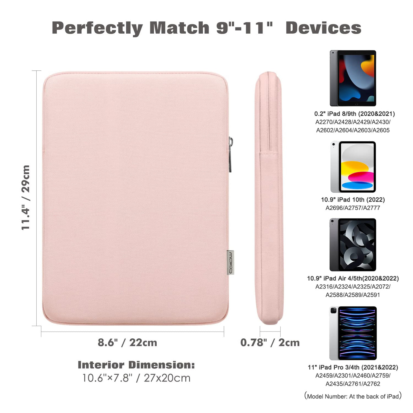 MoKo 9 11 Inch Tablet Sleeve Bag Carrying Case Fits iPad air 5 10.9' 2022,iPad Pro 11 M2 2022 2018,iPad 10th 10.9,iPad 9/8/7th Gen 10.2,iPad Air 4 10.9/Air 3 10.5,Tab S8/S9 11', Baby Pink