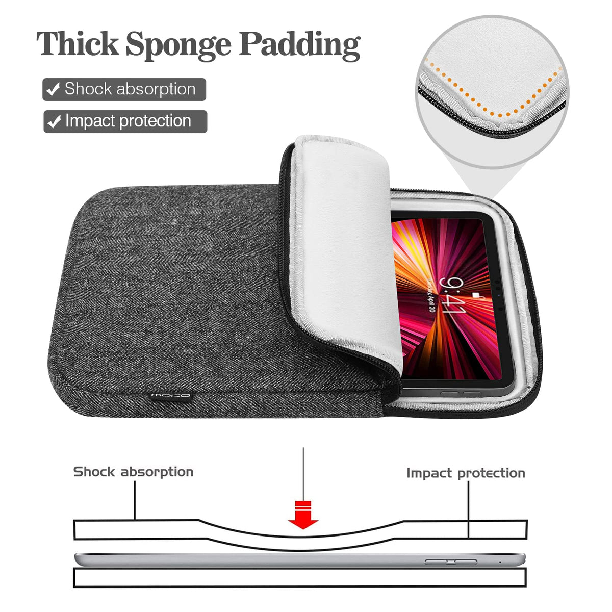 MoKo 9 11 Inch Tablet Sleeve Bag Carrying Case Fits iPad air 5 10.9' 2022, iPad Pro 11 M2 2022 2018, iPad 10th 10.9,iPad 9/8/7th Gen 10.2,iPad Air 4 10.9/Air 3 10.5,Tab S8/S9 11', Black & Gray