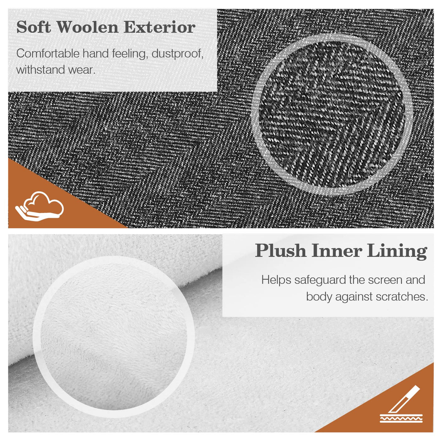 [UNIVERSAL] � The universal tablet sleeve bag fits most 9-11 inch tablet, such as New iPad Pro 11 M1 2021, iPad 10.9 2020 iPad Air 4th Gen, New iPad 9th Gen 10.2 2021,iPad 8th Gen 10.2 2020, iPad Pro 11' 2020/2018, iPad Air 3 10.5' 2019, iPad 10.2' 2019, iPad Pro 10.5', iPad 9.7', iPad Air 2 9.7', iPad 4/3/2 9.7', Galaxy Tab S8 11', Tab S6 Lite 10.4' 2020, Tab S6 10.5', Tab S3/S2 9.7', Tab S4 10.5', Tab A 10.1', Tab A 9.7', Tab S5e 10.5', Tab Pro 10.1', Tab Note 10.1', Surface Go 2 10.5. | [HIGH-QUALITY MATERIAL] - Made of high-end wool and polyester, which is anti-scratch and anti-friction. The high-density fluff lining provides the best protection for your device, and it is abrasion-resistant, dust-proof and splash-resistant. | [SECURITY] - The smooth zipper design provides greater security and prevents your device from accidentally dropping. Thicker sponges keep your device in a safer environment. | [PORTABLE] - Slim and lightweight, you can carry the stylish sleeve cover anywhere. It is suitable for both business travel and daily use. | [PROPER SIZE] - External dimension-11.42*8.66*0.79 inch (29*22*2cm). Internal dimension-10.63*7.87 inch (27*20cm). It�s recommended to use it in the bare device state.