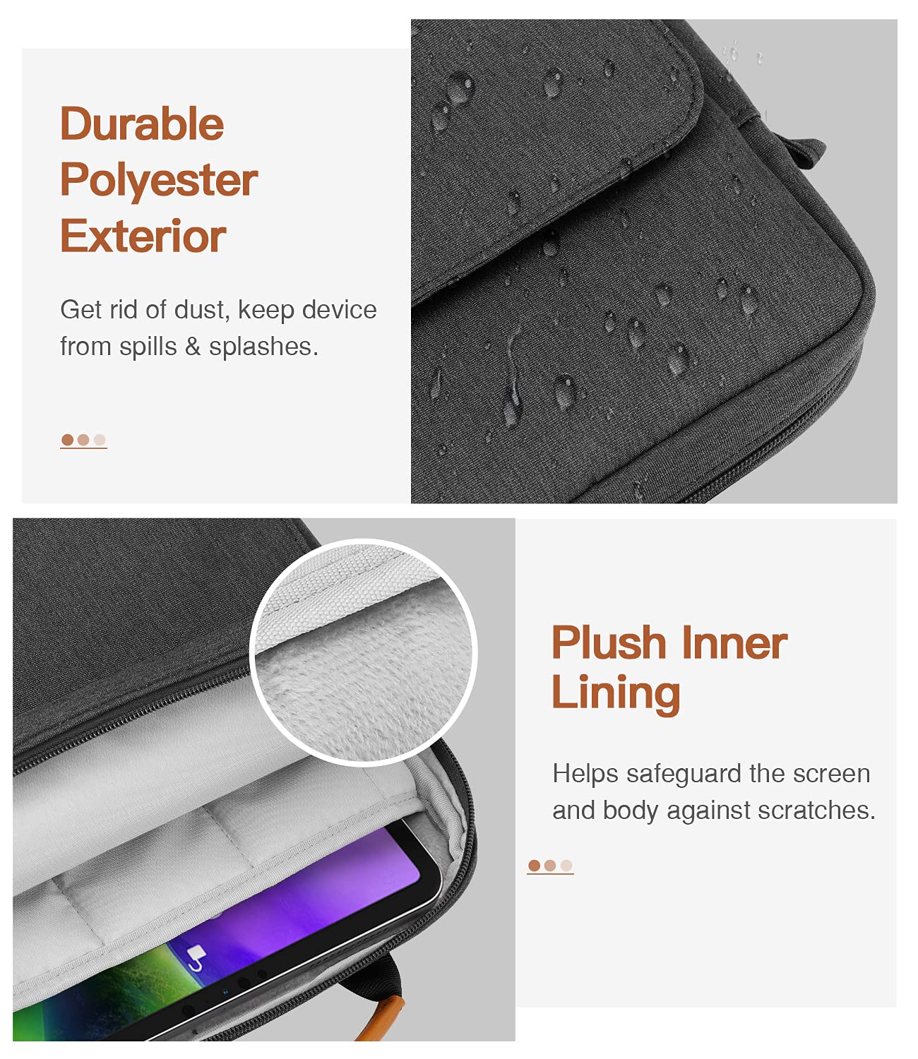 COMPATIBILITY: The sleeve bag is designed for most 9-11 inch tablets and fits smart keyboard. Fit New 11-inch iPad Pro M4/iPad Air M2 2024, iPad Pro 11 M2/M1 2022/2021, iPad Air 5/4th 10.9 Gen 2022/2020, iPad 10th Gen 10.9 2022, iPad 9th/8th/7th Generation 10.2 2021/2020/2019, iPad Air (3rd Gen) 10.5 Inch 2019, iPad Pro 10.5 inch 2017, iPad 9.7 6th/5th Generation (2018/2017), iPad 1/2/3/4, iPad Air / Air 2, Surface Go 2/3 10.5, Galaxy Tab S8/S9 11', Surface Go 10 Inch 2018 Release. | PREMIUM MATERIAL: Polyester exterior features wear-resistant against dust and splash. Thick sponge padding protects your tablet and items from shocks, collision and being squeezed. Soft inner lining prevents scratches. High-end material gives your device a superior protection. | NEAT STORAGE: The main compartment for placing your tablet. The thickened pocket with plush Lining, front zippered compartment and an open mesh pocket for well-organized storing your phone, USB cable, charger, power bank, earphones, cards. And there are 2 pen pockets inside to hold your pen. | CONVENIENT: Smooth zipper closure for quick access to your device. Retractable handle for convenient and comfortable carrying. Comes with a shoulder strap for carry around easily. Simple and stylish style is ideal for work or daily using. | ABOUT SIZE: With the external dimensions of 12.2' x 9.84' x 2.36' (31 x 25 x 6 cm), internal dimensions of 11.81' x 9.06' x 2.24' (30.5 x 23 x 5.7 cm), it is convenient to put in your bag while going outside. Please kindly note that measure the dimension of your device before purchasing.