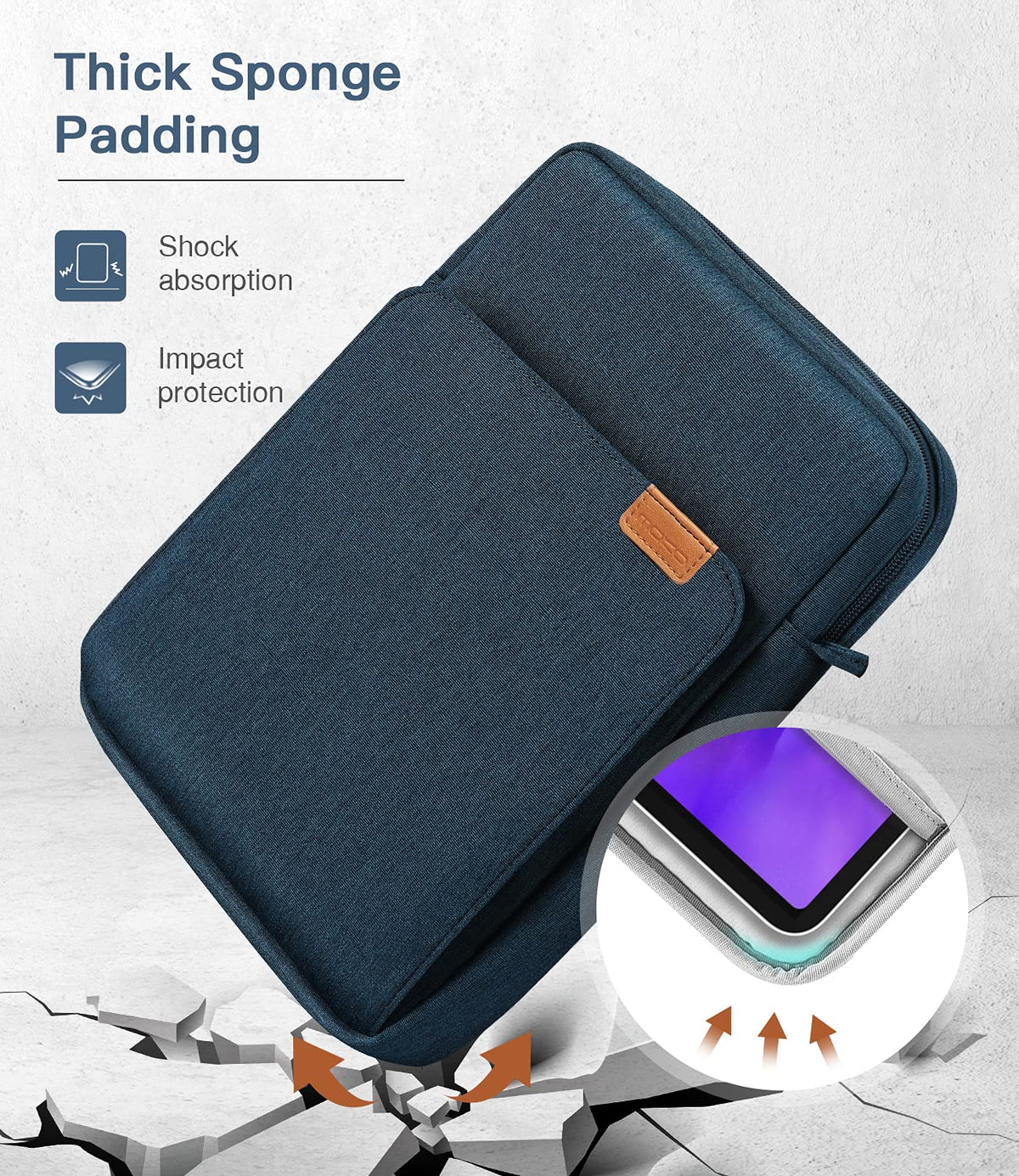 COMPATIBILITY: The sleeve bag is designed for most 9-11 inch tablets and fits smart keyboard. Fit New 11-inch iPad Pro M4/iPad Air M2 2024, iPad Pro 11 M2/M1 2022/2021, iPad Air 5/4th 10.9 Gen 2022/2020, iPad 10th Gen 10.9 2022, iPad 9th/8th/7th Generation 10.2 2021/2020/2019, iPad Air (3rd Gen) 10.5 Inch 2019, iPad Pro 10.5 inch 2017, iPad 9.7 6th/5th Generation (2018/2017), iPad 1/2/3/4, iPad Air / Air 2, Surface Go 2/3 10.5, Galaxy Tab S8/S9 11', Surface Go 10 Inch 2018 Release. | PREMIUM MATERIAL: Polyester exterior features wear-resistant against dust and splash. Thick sponge padding protects your tablet and items from shocks, collision and being squeezed. Soft inner lining prevents scratches. High-end material gives your device a superior protection. | NEAT STORAGE: The main compartment for placing your tablet. The thickened pocket with plush Lining, front zippered compartment and an open mesh pocket for well-organized storing your phone, USB cable, charger, power bank, earphones, cards. And there are 2 pen pockets inside to hold your pen. | CONVENIENT: Smooth zipper closure for quick access to your device. Retractable handle for convenient and comfortable carrying. Comes with a shoulder strap for carry around easily. Simple and stylish style is ideal for work or daily using. | ABOUT SIZE: With the external dimensions of 12.2' x 9.84' x 2.36' (31 x 25 x 6 cm), internal dimensions of 11.81' x 9.06' x 2.24' (30.5 x 23 x 5.7 cm), it is convenient to put in your bag while going outside. Please kindly note that measure the dimension of your device before purchasing.