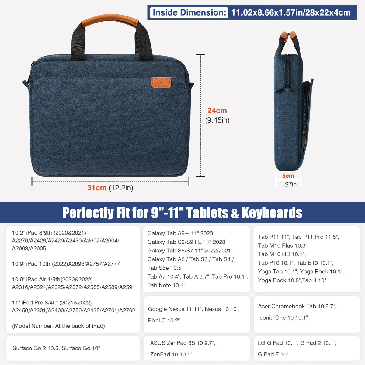 MoKo 9 11 Inch Tablet Sleeve Case, Protective Handle Shoulder Bag Fits iPad Air 5/4th 10.9, iPad 10th Gen. 10.9, iPad Pro 11, iPad 9/8/7th 10.2, Tab S8/S9 11', Surface Go 2/3 10.5, Indigo