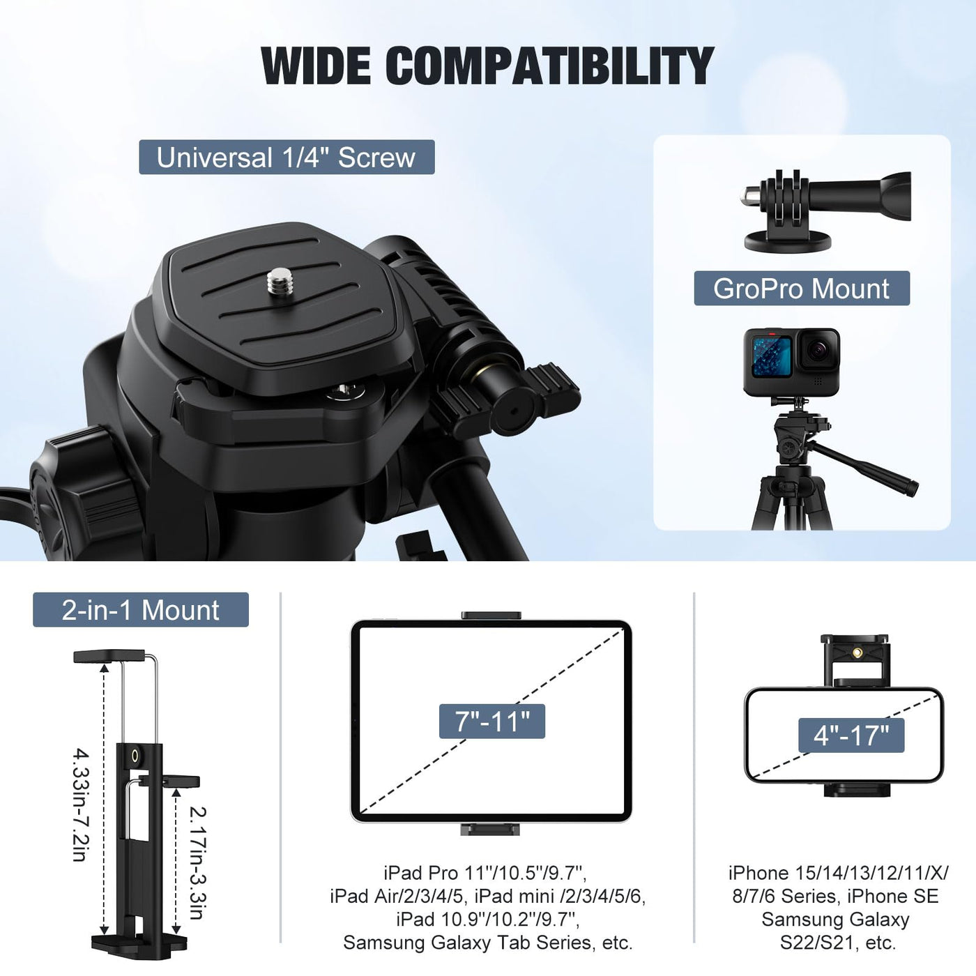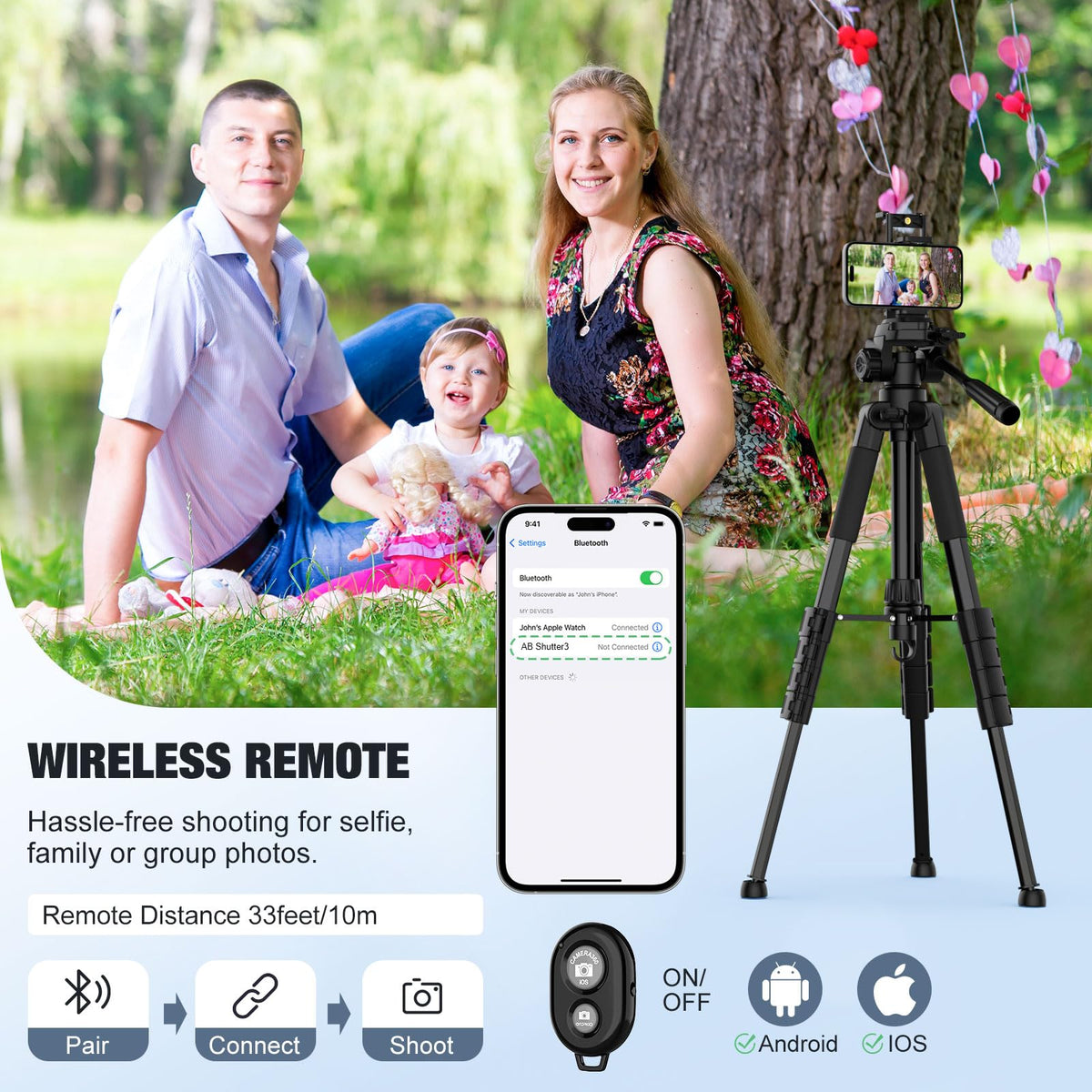 MoKo Camera Tripod for iPad 70' Phone Tripod Stand with Travel Bag, Tripod for iPhone with Phone Holder, Wireless Remote, Travel Tripod for Camera DSLR SLR, Cell Phones, Tablets, Projector, Webcam