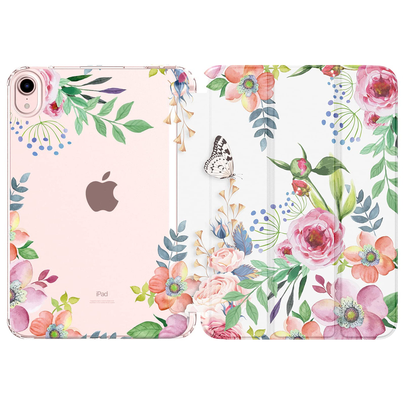 MoKo Case Fit New iPad Mini 7 (A17 Pro) 2024, iPad Mini 6th Generation Case 2021 (8.3 inch), iPad Mini 6 Case, Soft TPU Translucent Frosted Back Cover Case for iPad Mini 7th, Fragrant Flowers