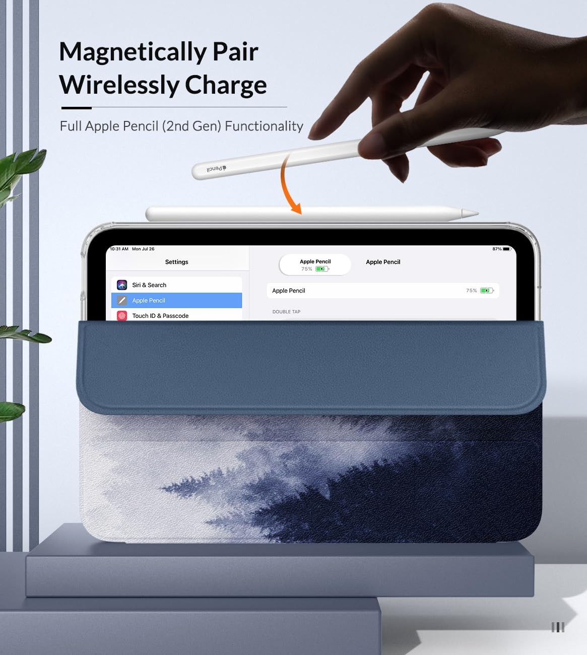 Compatible Models - Designed exclusively to protect and complement iPad Mini (A17 Pro) 2024 (A2993/A2995/A2996), iPad Mini 6th Generation 8.3' 2021 (model number: A2567, A2568, A2569); accurate cutouts allow easy access to all ports and features | 2 Viewing Angles - Strong magnetic connection helps create a stable viewing stand for your tablet; Two angles are provided for satisfying your viewing or typing needs; avoid any joint pain, and free your hands for other entertainments | Excellent Quality - Made of premium PU leather exterior, soft microfiber inner lining and translucent soft TPU back shell, this case provides full body protection against fingerprints, shocks, scratches and dust during daily use | Support Touch ID Function and Auto Wake/Sleep - Side opening also for Touch ID to function well and with built-in magnetic strip, the case automatically wakes or puts the device to sleep when the lid is opened and closed; protects and extends battery life | Pencil Pro/USB-C/2nd Attachment Supported - Slim side design allow Apple Pencil Pro/USB-C/2nd Gen magnetically attaching, pairing and charging, convenient to carry the pencil with.