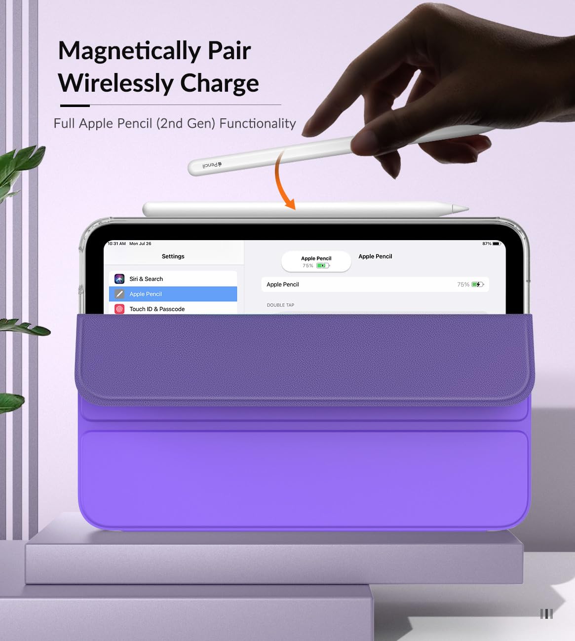 Compatible Models - Designed exclusively to protect and complement iPad Mini (A17 Pro) 2024 (A2993/A2995/A2996), iPad Mini 6th Generation 8.3' 2021 (model number: A2567, A2568, A2569); accurate cutouts allow easy access to all ports and features | 2 Viewing Angles - Strong magnetic connection helps create a stable viewing stand for your tablet; Two angles are provided for satisfying your viewing or typing needs; avoid any joint pain, and free your hands for other entertainments | Excellent Quality - Made of premium PU leather exterior, soft microfiber inner lining and translucent soft TPU back shell, this case provides full body protection against fingerprints, shocks, scratches and dust during daily use | Support Touch ID Function and Auto Wake/Sleep - Side opening also for Touch ID to function well and with built-in magnetic strip, the case automatically wakes or puts the device to sleep when the lid is opened and closed; protects and extends battery life | Pencil Pro/USB-C/2nd Attachment Supported - Slim side design allow Apple Pencil Pro/USB-C/2nd Gen magnetically attaching, pairing and charging, convenient to carry the pencil with.
