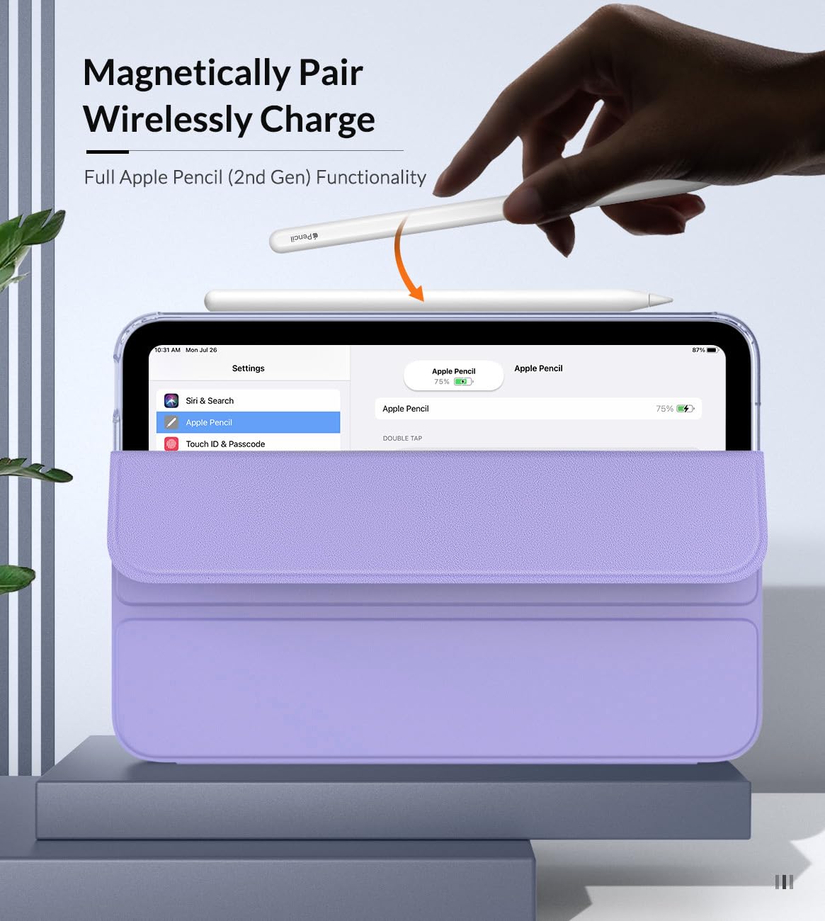 Compatible Models - Designed exclusively to protect and complement iPad Mini (A17 Pro) 2024 (A2993/A2995/A2996), iPad Mini 6th Generation 8.3' 2021 (model number: A2567, A2568, A2569); accurate cutouts allow easy access to all ports and features | 2 Viewing Angles - Strong magnetic connection helps create a stable viewing stand for your tablet; Two angles are provided for satisfying your viewing or typing needs; avoid any joint pain, and free your hands for other entertainments | Excellent Quality - Made of premium PU leather exterior, soft microfiber inner lining and translucent soft TPU back shell, this case provides full body protection against fingerprints, shocks, scratches and dust during daily use | Support Touch ID Function and Auto Wake/Sleep - Side opening also for Touch ID to function well and with built-in magnetic strip, the case automatically wakes or puts the device to sleep when the lid is opened and closed; protects and extends battery life | Pencil Pro/USB-C/2nd Attachment Supported - Slim side design allow Apple Pencil Pro/USB-C/2nd Gen magnetically attaching, pairing and charging, convenient to carry the pencil with.