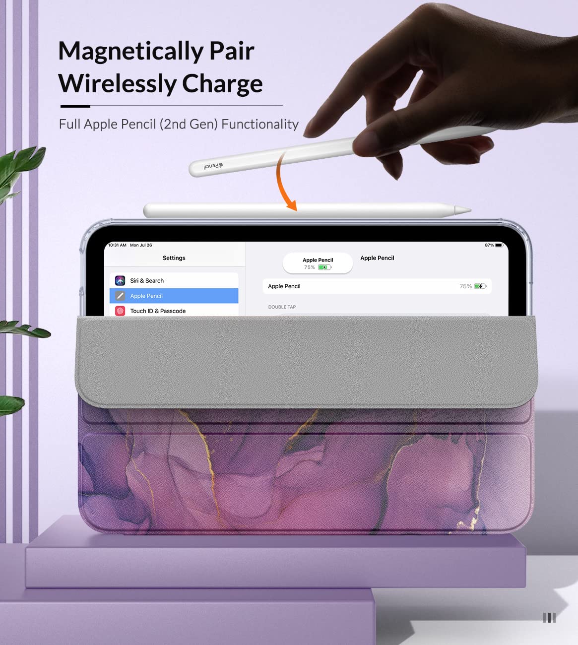 Compatible Models - Designed exclusively to protect and complement iPad Mini (A17 Pro) 2024 (A2993/A2995/A2996), iPad Mini 6th Generation 8.3' 2021 (model number: A2567, A2568, A2569); accurate cutouts allow easy access to all ports and features | 2 Viewing Angles - Strong magnetic connection helps create a stable viewing stand for your tablet; Two angles are provided for satisfying your viewing or typing needs; avoid any joint pain, and free your hands for other entertainments | Excellent Quality - Made of premium PU leather exterior, soft microfiber inner lining and translucent soft TPU back shell, this case provides full body protection against fingerprints, shocks, scratches and dust during daily use | Support Touch ID Function and Auto Wake/Sleep - Side opening also for Touch ID to function well and with built-in magnetic strip, the case automatically wakes or puts the device to sleep when the lid is opened and closed; protects and extends battery life | Pencil Pro/USB-C/2nd Attachment Supported - Slim side design allow Apple Pencil Pro/USB-C/2nd Gen magnetically attaching, pairing and charging, convenient to carry the pencil with.