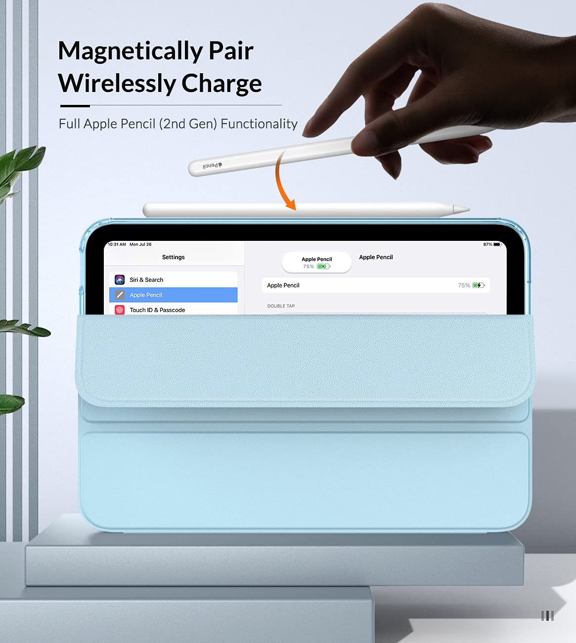 Compatible Models - Designed exclusively to protect and complement iPad Mini (A17 Pro) 2024 (A2993/A2995/A2996), iPad Mini 6th Generation 8.3' 2021 (model number: A2567, A2568, A2569); accurate cutouts allow easy access to all ports and features | 2 Viewing Angles - Strong magnetic connection helps create a stable viewing stand for your tablet; Two angles are provided for satisfying your viewing or typing needs; avoid any joint pain, and free your hands for other entertainments | Excellent Quality - Made of premium PU leather exterior, soft microfiber inner lining and translucent soft TPU back shell, this case provides full body protection against fingerprints, shocks, scratches and dust during daily use | Support Touch ID Function and Auto Wake/Sleep - Side opening also for Touch ID to function well and with built-in magnetic strip, the case automatically wakes or puts the device to sleep when the lid is opened and closed; protects and extends battery life | Pencil Pro/USB-C/2nd Attachment Supported - Slim side design allow Apple Pencil Pro/USB-C/2nd Gen magnetically attaching, pairing and charging, convenient to carry the pencil with.