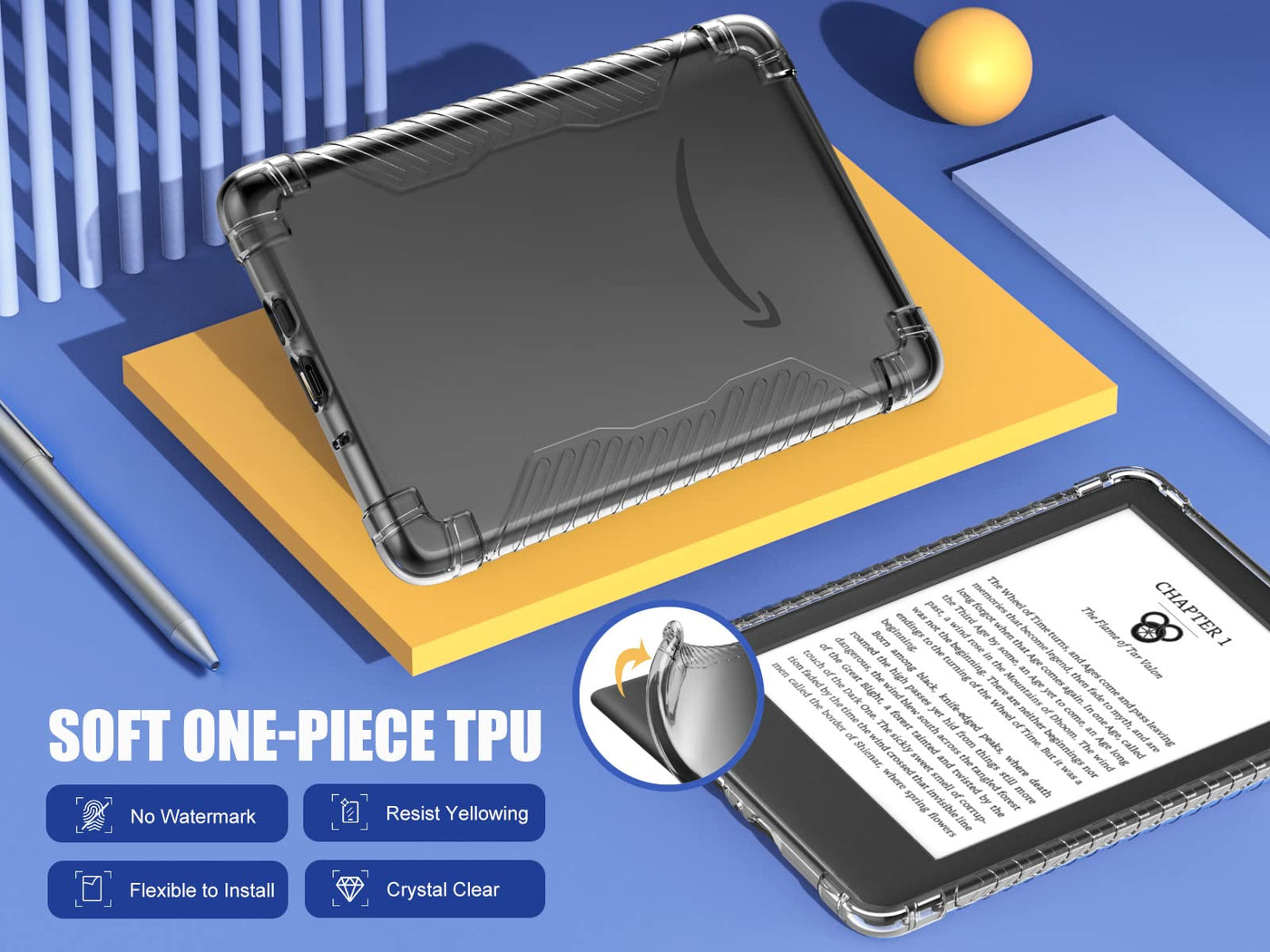 Compatibility: Dsigned exclusively for 6' ALL-New Kindle (11th Generation-2024/2022 Release). Model No: C2V2L. Not fit other prior generation Kindle devices. | Thin & Lightweight: Our Kindle case 11th generation made of soft TPU, the cover is premium, lightweight and protective. Transparent and waterproof design guards your precious Kindle perfectly with a fashioned look. | Protective: Special ruffled back design can greatly protect the back and sides of your precious device from accidental falls or drops. The raised edges at the four corner provides extra protection for tablet screen glass. | Precise Cutting: Precise cutouts for all ports, buttons and speaker allow full access to all features and controls without having to remove the cover. | Original Beauty Display: Non-yellowing TPU bumper clearly displays the original beauty of the Kindle 2024, you can DIY the back with photos or cute pictures.