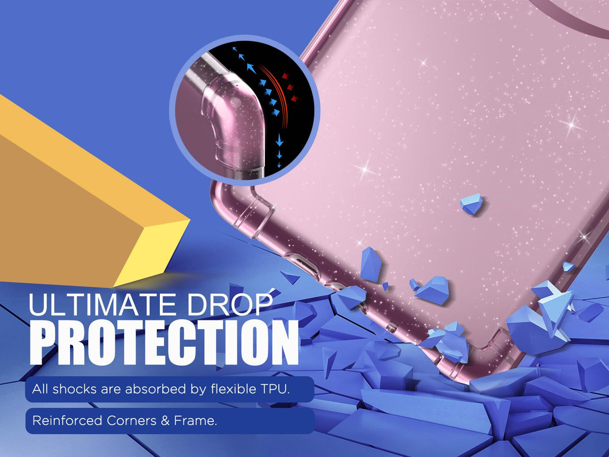 MoKo Case for 6' All New Kindle (11th Generation 2024/2022 Release), Ultra Clear Soft Flexible Transparent TPU Skin Bumper Back Cover Shell, Glitter Flowers Pink