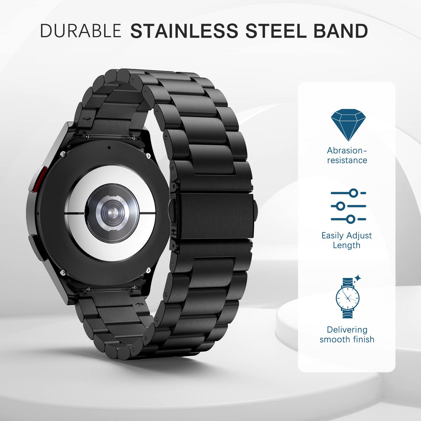 Compatibility:Custom Designed Compatible With Samsung Galaxy Watch 5Galaxy Watch 5 Progalaxy Watch 4Galaxy Watch 4 Classic Wristband, This Stainless Steel Watch Band Features A Combination Of Functionality And Styleproduct Description:* Adopt Classic Button Dual Folding Buckle Clasp, Firmly Closed, And Prevent Loosen Automatically, Easily To Take On Remove, Safe And Beautiful* Made Of High Quality 302 Stainless Steel, The High-Tech Surface Finish And Premium Stainless Steel Watch Strap Fits Your Device And Feels Comfortable On Your Wrist Flexible Wristband With Smooth Finishing For Comfortable Day To Day Wear* Flexible Stainless Steel Mesh For Comfortable Day To Day Wear This Stainless Steel Watch Strap Comes With A Protective Case To Easily Match Your Everyday Life* Come With Case Protection Design Makes It Fast And Easy To Install Or Take Out The Strap Comes With One Removal Tool And 3 Needles For Adjusting The Length Of The Strap Fits 55-87 (140Mm-220Mm) Wrist