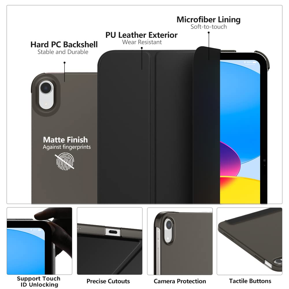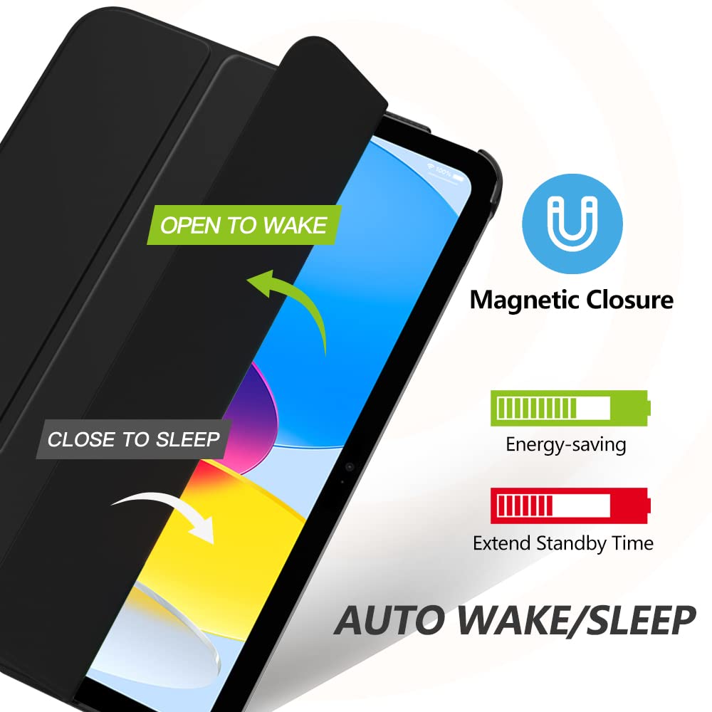Compatibility : Specially designed for iPad (A16) 11th generation 11-inch 2025 (Model: A3355,A3356),iPad 10th generation 10.9-inch 2022 (Model: A2696, A2757, A2777). Note: It will not be compatible other model. Please check your iPad model before purchase|Excellent Quality : Our iPad 11th/10th Gen 11/10.9 inch case 2025/2022 is made of premium PU leather exterior, Soft microfiber lining and coverage with translucent PC back shell, Providing total full protection for your precious tablet|Adjustable Angles : Strong magnetic connection to create a stable viewing/typing stand for your iPad (A16) 11th generation tablet 2025 or iPad 10th generation tablet 2022. Two viewing angles are provided for watching, reading or typing. Satisfying your needs. Free your hands for other entertainments|Support Apple 1st/USB-C Pencil Charging and Touch ID : With the precise cutouts, this new iPad 11/10.9 inch Case 2025/2022 supports 1st /USB-C apple pencil charging (Need Apple USB-C to Apple Pencil Adapter) and Touch ID functions. Also allows you to access to all features and controls, Such as speakers, earphones and volume buttons.(Pencil is Not included)|Auto Wake/Sleep : With the built-in magnetic, This case for iPad 11th generation 2025 or iPad 10th generation 2022 can automatically wake up you device or put it into sleep with the lid open or closed. Protects and extends battery life