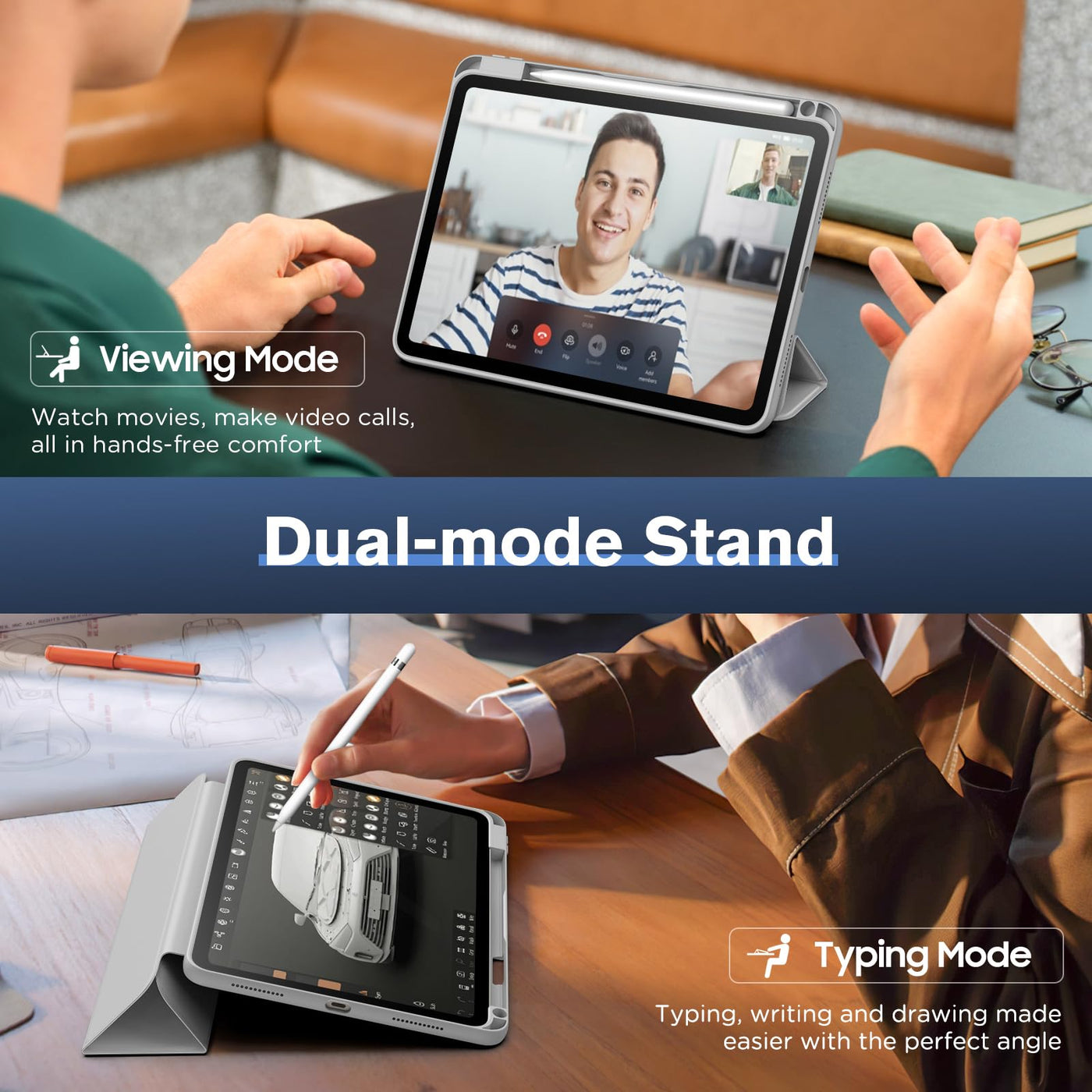 Foldable front cover to create a stand for better typing or viewing, convenient for face-time call and video conference, watching movies and so on.