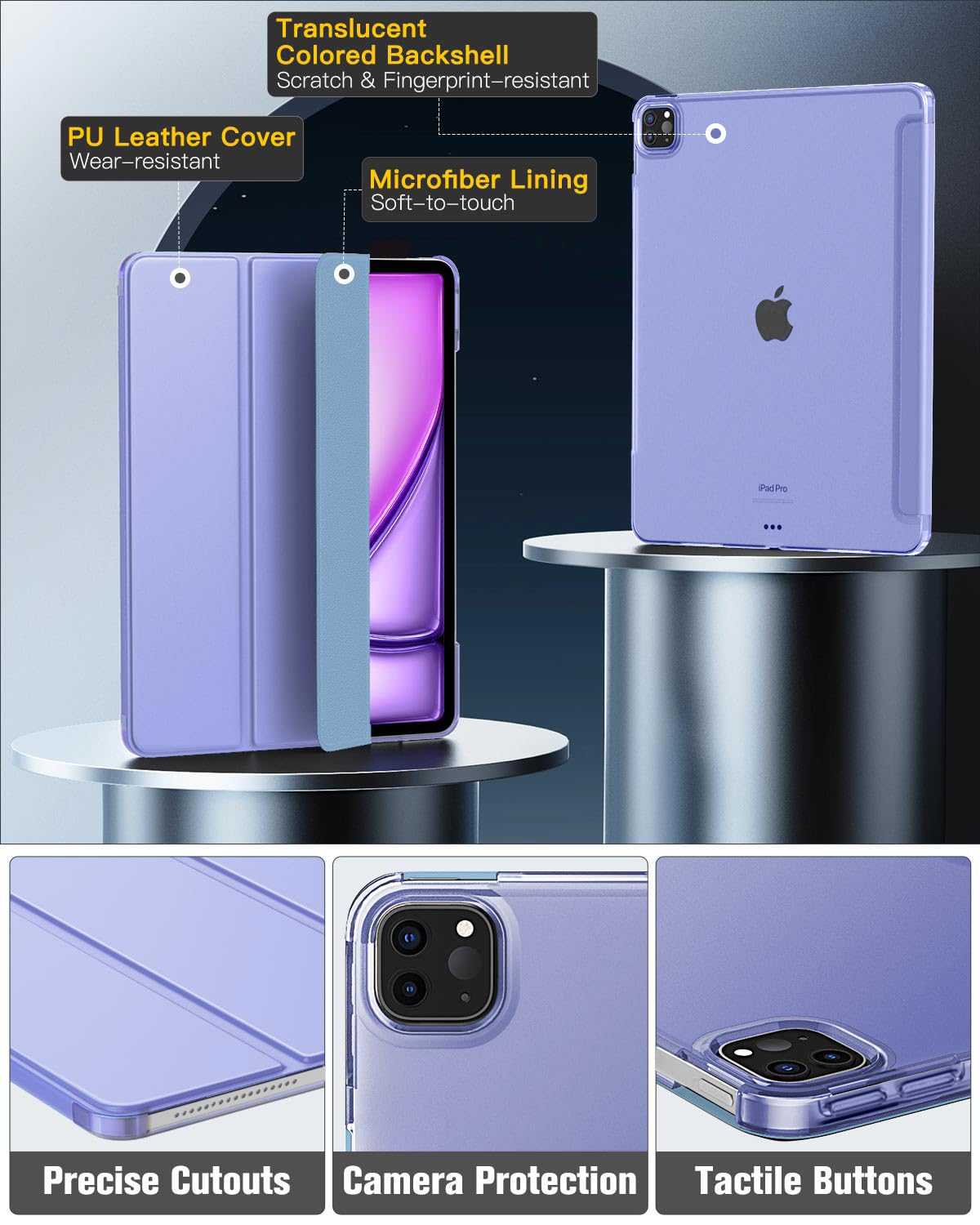 Apple Pencil Magnetic Attach Charging Supported : Side opening of this iPad Air 13/iPad Pro 12.9 case supports the Apple Pencil Pro /2nd/USB-C attached to your tablet magnetically to pair without taking off the case. Access to all features and controls | Adjustable Angles : Strong magnetic connection to create a stable landscape viewing stand for your iPad Air 13 Inch 2024, iPad Pro 12.9. Two angles are provided for satisfying your viewing and typing needs | Well-made Protection : Our iPad Air 13 Inch 2024, iPad Pro 12.9 2022/2021 Case is made of premium PU leather exterior, soft microfiber lining and coverage with translucent hard PC back shell, this case provides total full body protection against fingerprints, shocks, scratches and dust. The translucent frosted back cover allows you to see the icon through your favorite color | Auto Wake/Sleep : Built-in magnetic strip, automatically wakes or puts your iPad Air 13 Inch 2024, iPad Pro 12.9 to sleep when the lid is opened and closed. Protects and extends battery life | Perfectly Compatibility : Designed exclusively for iPad Air 13 Inch 2024 (Model: A2898/A2899/A2900), iPad Pro 12.9 inch 6th Generation 2022 (Model: A2436/A2764/A2437/A2766) and iPad Pro 12.9 inch 5th Generation 2021 (Model: A2378/A2461/A2379/A2462); It is Not compatible with any other devices. Please check back bottom of your iPad to find the model number